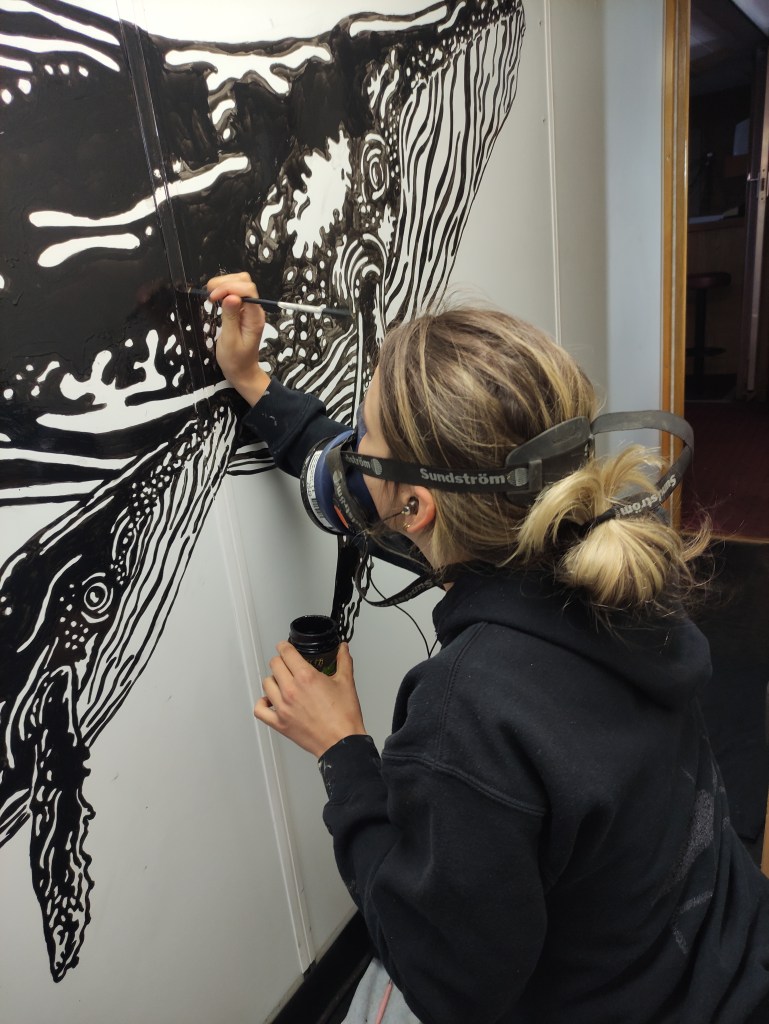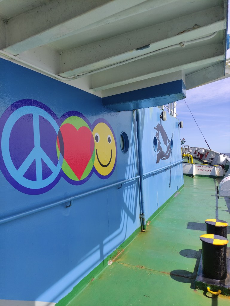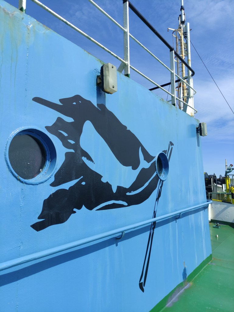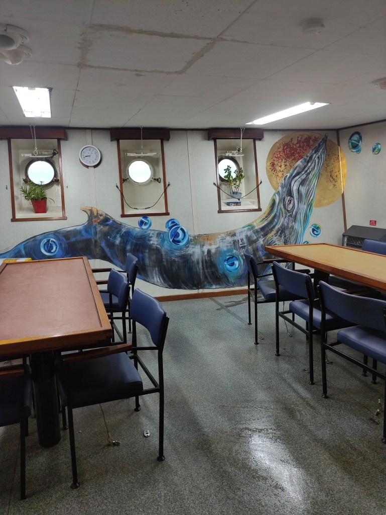 Adélie is a young French artist who, besides her activities on deck, has drawn a beautiful whale with her calf inside the JPD. Anyone who makes a donation of US$250 can have their name drawn in an air bubble inserted into the mural. I also wanted to leave something indelible and asked for the names of both my children Emanuele Giosuè and Sara Luna to be included. Now they too will ‘travel’ on board the ship along with their mother’s indelible memories.