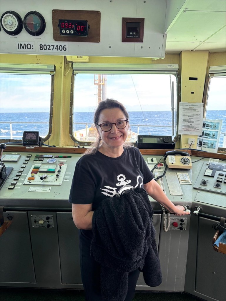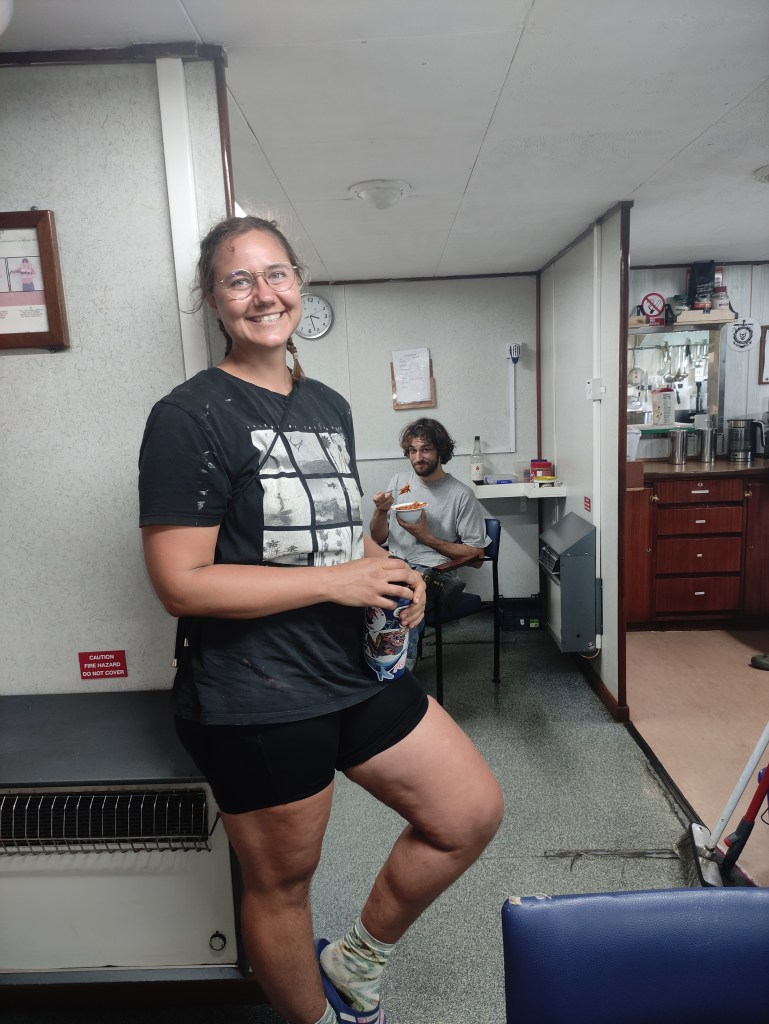But the best was yet to come. What I couldn’t have imagined, was that during the first five days of the crossing, the Atlantic Ocean showed its worst side. Elaine, who was supposed to work with me in the kitchen, was incapacitated by seasickness. With the ocean extremely rough during the first few days, three-quarters of the crew were very ill and obviously not hungry. Luckily for me, having worked on airplanes for many years, I was spared from motion sickness, which was particularly horrible for those working in the high temperatures of the engine room. Seeing my fellow adventurers with pale faces and teary eyes broke my heart, and I felt a really strong sense of empathy. I tried as best I could to alleviate their discomfort by preparing porridge or water with lemon and ginger. It must be said that besides the jolting and rolling with a full oscillation, the pitching was the longitudinal tilting moment when the bow of the ship came out of the water, and that was what literally made you feel like your stomach was in your mouth. In rough seas, I tried to hold on to every protrusion in the kitchen so as not to fall on the floor (although I did fall several times, causing bruises and injuries), so it was unthinkable to use pots with liquids, and I had to cook everything in the oven for four days. We walked with our legs apart, bending one knee in the opposite direction of the rolling to cushion the effect. The corridors on the JPD are narrow, so it was easy to move around, but in the open compartments, you had to be very careful. When the crew members began to feel better and their appetites returned, I increased the portions, but unfortunately I was still alone in the kitchen. Angelina, Chelle, and Adélie helped me several times, but the boys were also always available if I needed them. On the afternoon of the sixth day of sailing, Elaine finally showed up.
