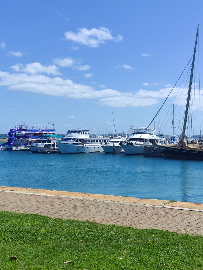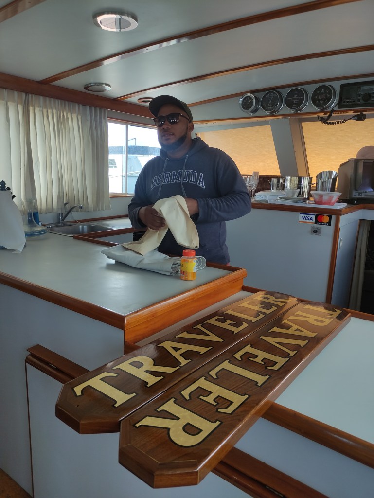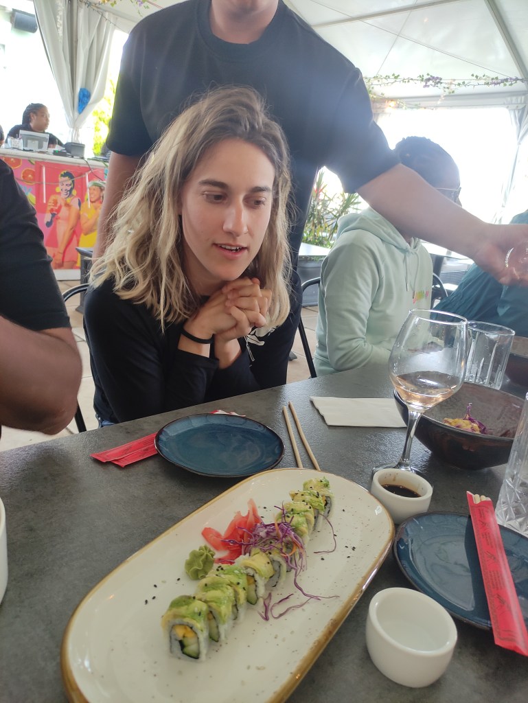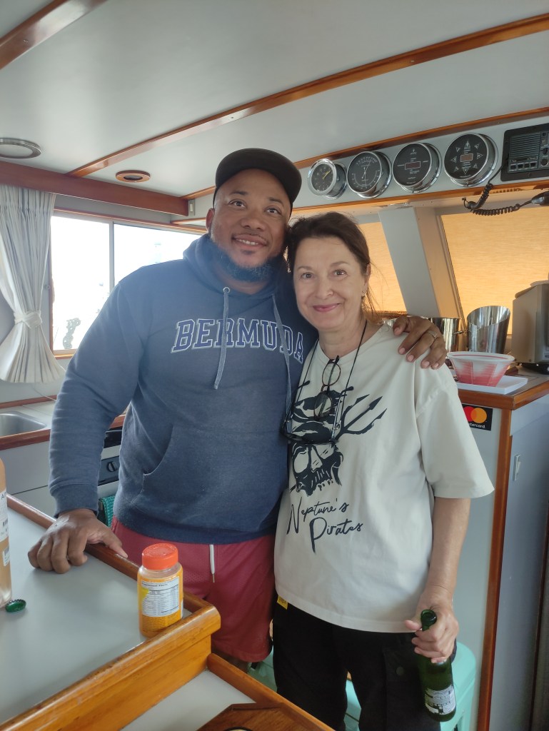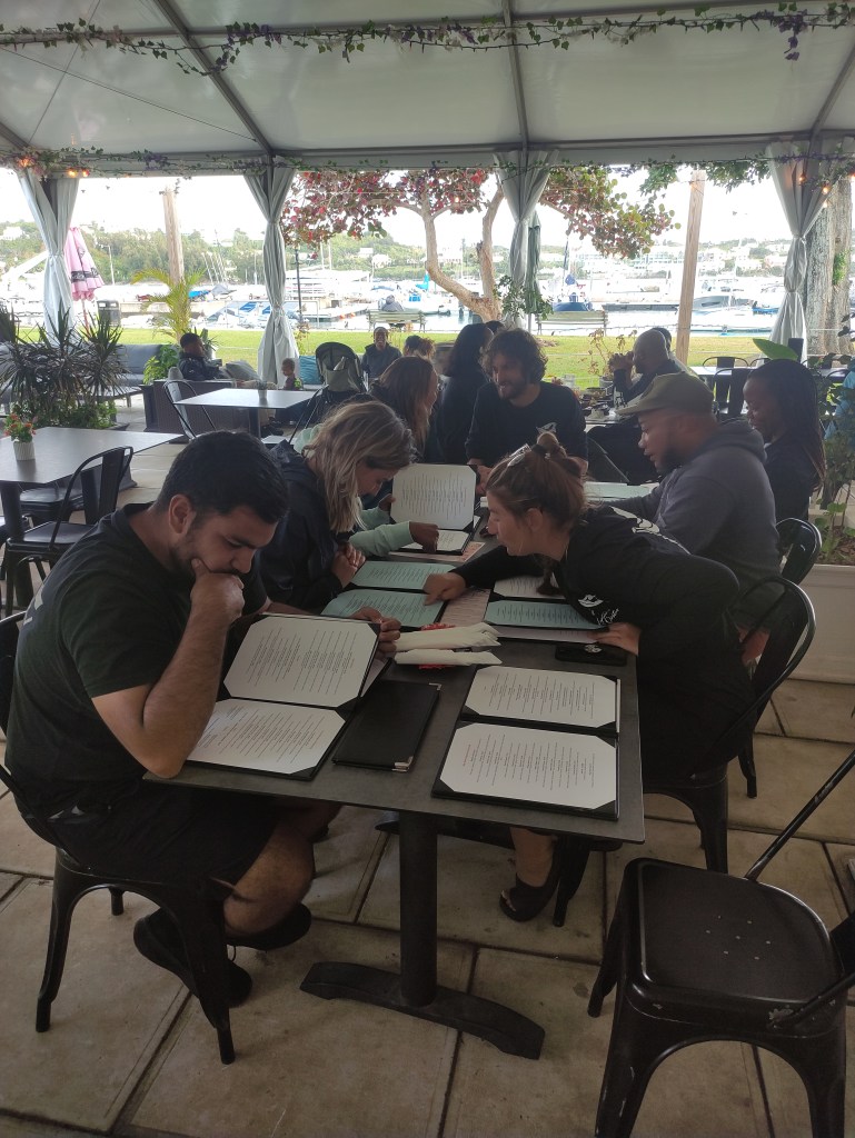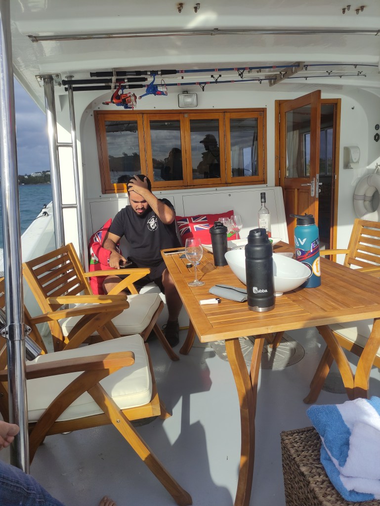 To my surprise, on Tuesday April 22nd in the afternoon, Thato had organised a trip out to sea (known as “Free Claudine”). KJ Keerome, an entrepreneur who runs a charter company, took some of us (Alex, Adélie, Angelina, Chelle, Juan Carlos and Vivien) out on a motorboat. In Hamilton, KJ treated us to a delicious dinner at the Déjà View restaurant. This gesture was greatly appreciated by everyone, and we had a lot of fun.