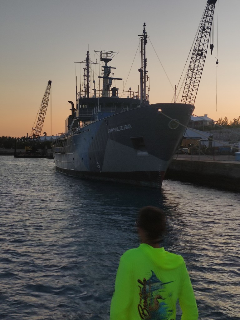 As the ship is 43 years old and required a lot of maintenance work, we finally managed to set sail on April 25th after spending two weeks in the port of the Royal Naval Dockyard Bermuda.