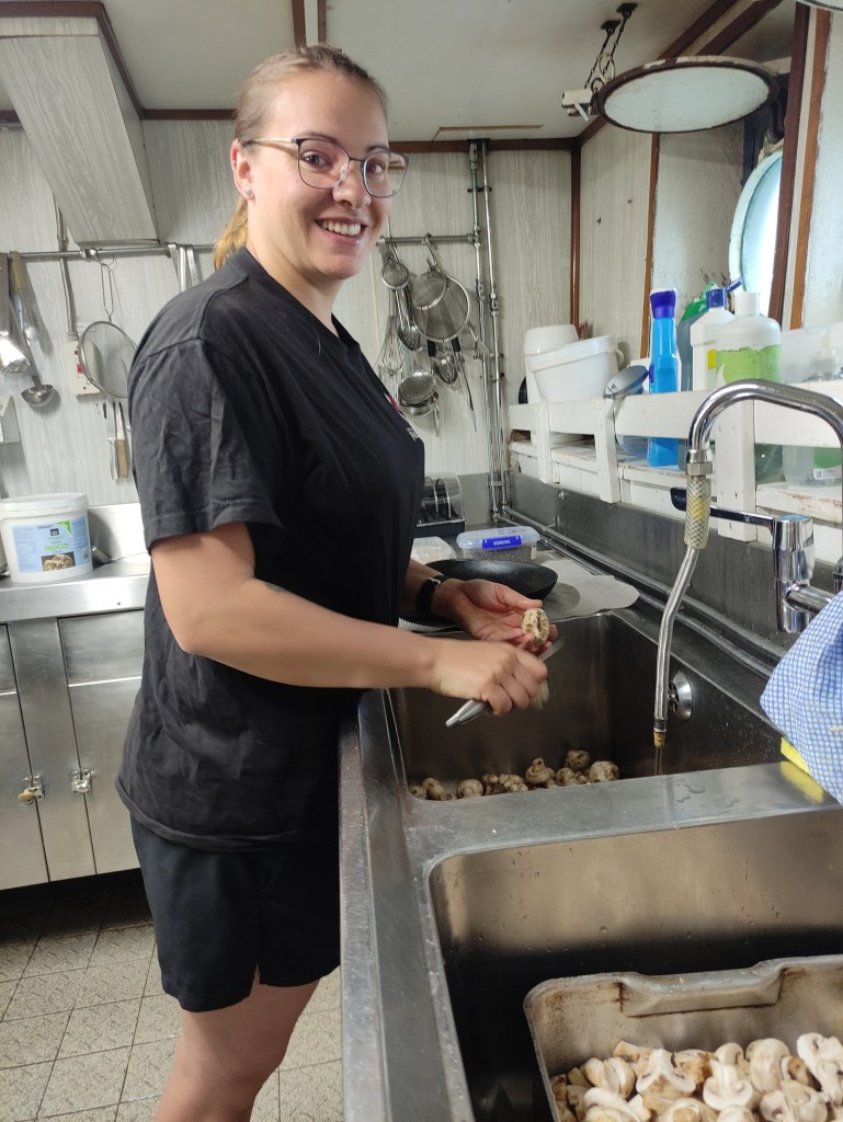 After the first days of bad weather, when help arrived in the kitchen, the journey became more peaceful and I managed to take breaks and spend more time with the crew members.