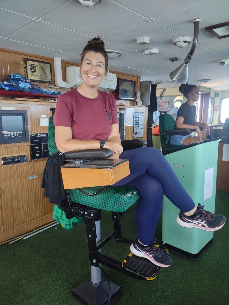 I thought I would be working as an assistant cook, but I found myself managing the organization of the ship’s kitchen entirely on my own, as the earlier cook had left and been replaced by another crew member. Thato kindly helped me for a day, explaining how to use some of the equipment and showing the location of the supplies. Chelle was always there too, ready to help with anything I needed. She and the bosun Larry took care of the shopping, shuttling many times back and forth between the town and the ship on a Vespa, loaded down with goods.