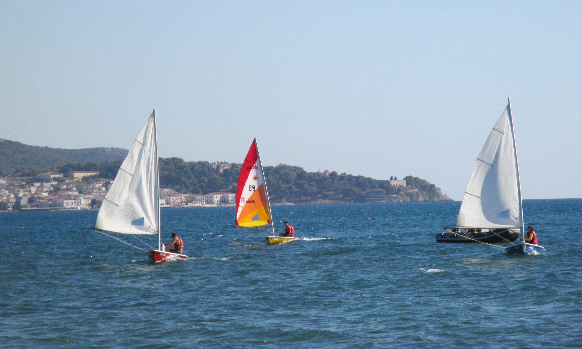 Abbiamo soggiornato a Gialova, dove entrambi i ragazzi hanno partecipato al corso di vela organizzato dallo Yacht Club Locarno (YCLO).