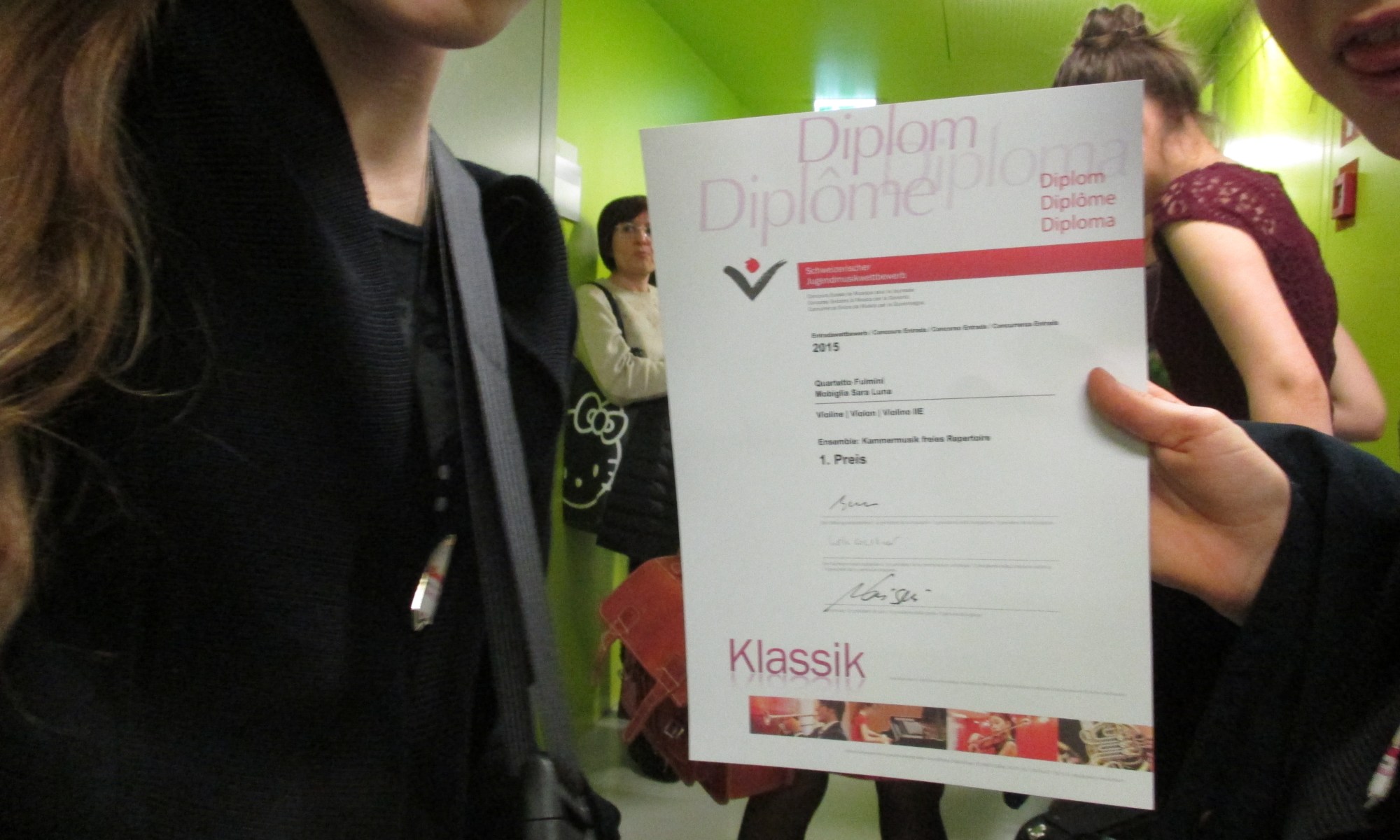 Fortunately emotions follow one another constantly: those sad that leave us helpless and the joyful ones that allow us to dream of a better world! This was a long weekend really exciting, with a music competition in Neuchâtel with my daughter Sara Luna and the string quartet I Fulmini (The Lightning – Francesca, Sara Luna, Valentina and Antonio) and one in Winterthur with Emanuele Giosuè as soloist. It is always a strong emotion to attend to these events, to see these young people who are confronted before a jury, not always lenient because the rivalry is very large. It takes tremendous courage… that I myself would not have… and I admit that having lived side by side with these young people participating in their meetings and assays, listening to hours and hours of daily exercises at home, at the end the thrill is tremendous!