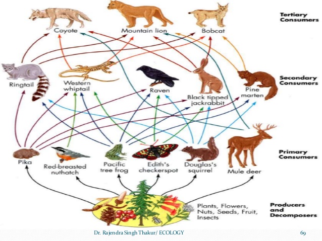 Nella componente degli organismi viventi, troviamo i consumatori primari (insetti e animali) che sono erbivori. A loro volta i consumatori primari sono preda dei consumatori secondari e terziari (predatori carnivori incluso l’uomo).