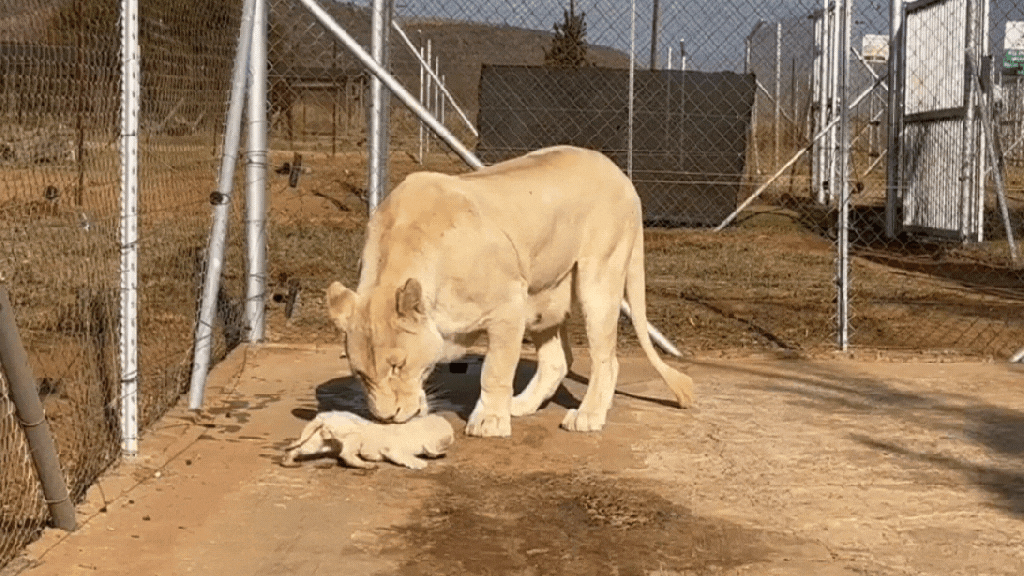 Heartbreakingly, a newborn lion cub died soon after our partner took over the breeding facility. This was not only because the environment was entirely unsuitable for the cub – not a blade of grass in sight, just hard cement ground – but also because the mother did not know how to care for her baby. She had only ever had her babies stolen from her and did not know how to look after her helpless offspring. Her confusion underscores the severe damage that breeding facilities cause to animals and their natural instincts.