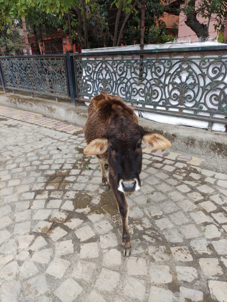Rishikesh is not a โsmall townโ but a fairly large city divided into zones. Our hotel is in the area north of the Ganges which is a pedestrian area, but cows and scooters circulate freely there and it is near the famous Parmath Niketan ashram. The Yoga/meditation international festival is held there every year and it is a gathering place for many teachers from allover the planet. I did every day some meditation and yoga, trying to calm the Mind that had only the desire to wander freely and without constraint, but it was not easy.
