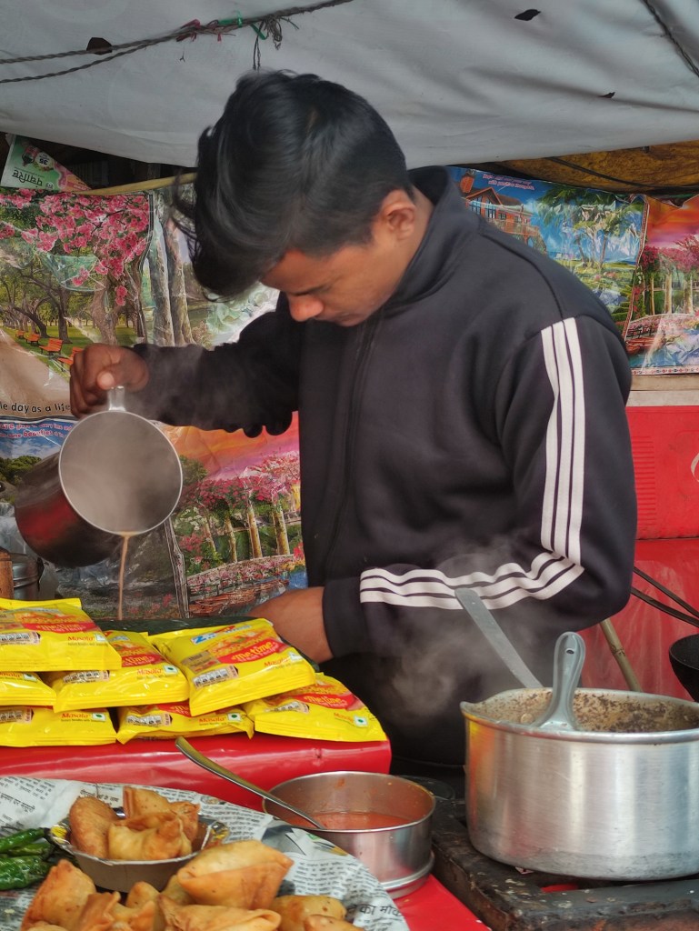 On the way back, we passed through the back of Laxman Jula, so I was able to take a photo from the top of the Trayambakeshwar Temple where more than once I stopped to drink a chaรฏ from a hawker stall.