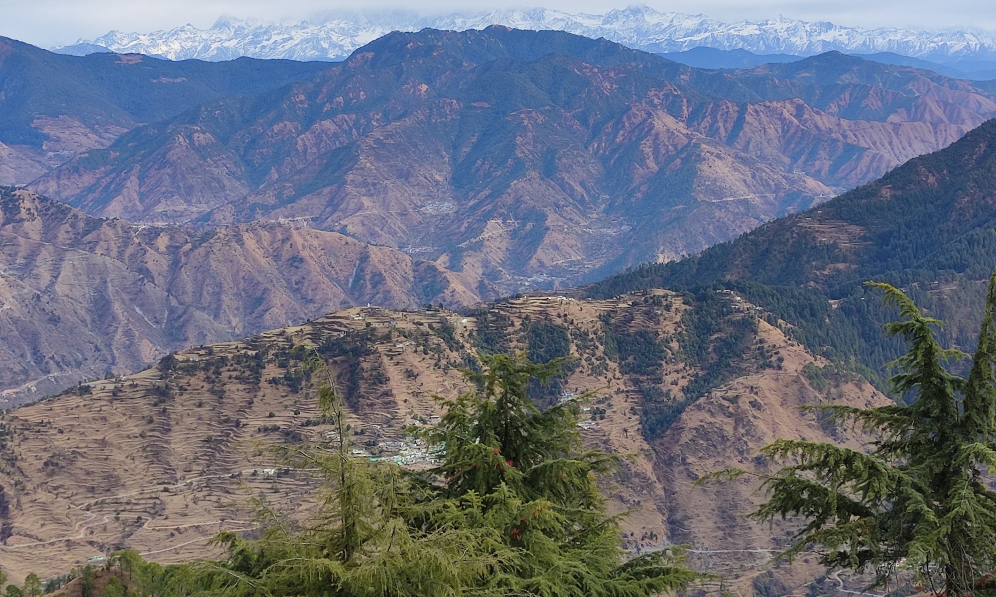 I walked a lot covering more than 10 km each day, and while visiting Mussoorie at 2000 m/sl and Lal Tibba at 2300 m/sl, almost 20 km thanks to the good and apreciate guide who accompanied me through the maze of paths some of them marked only in Hindi. Had it been up to me, I would certainly have gotten lost. But for me the hotspot was the desire to reach some place of interest as far north as possible: I wanted to admire the distant peaks of the Himalayas.