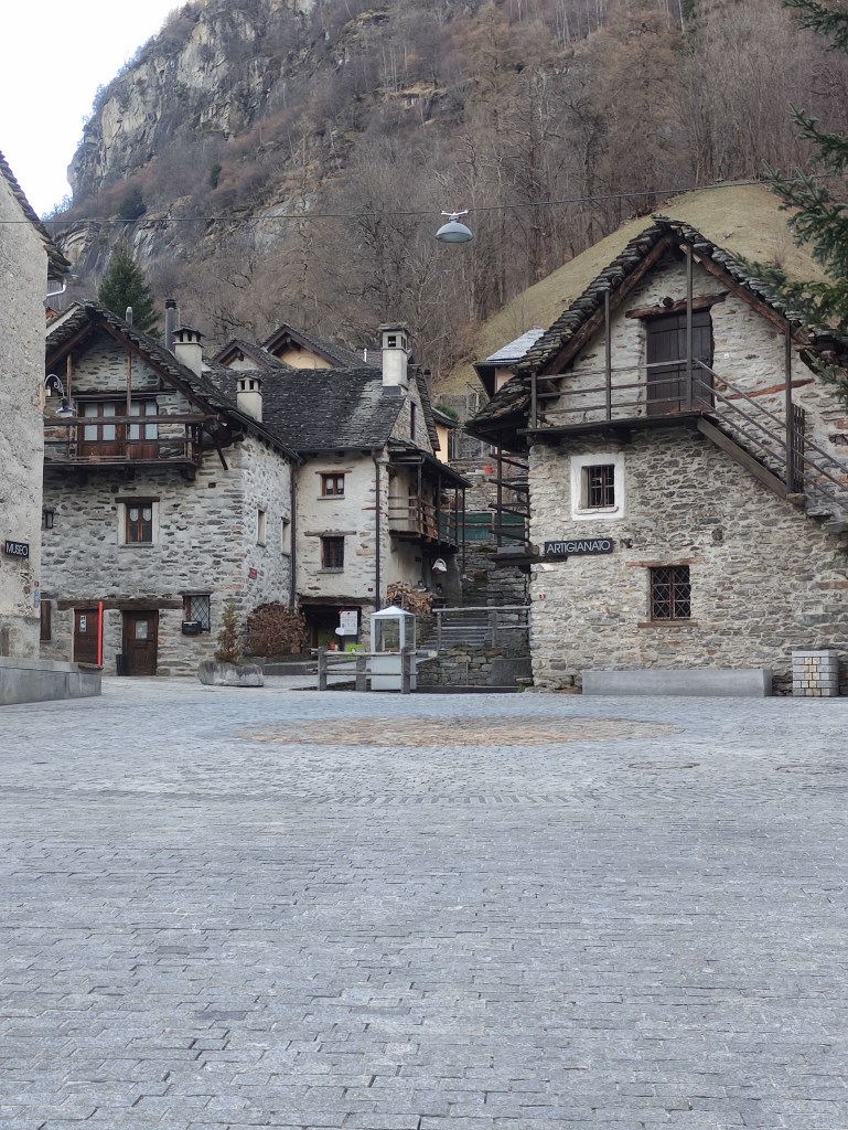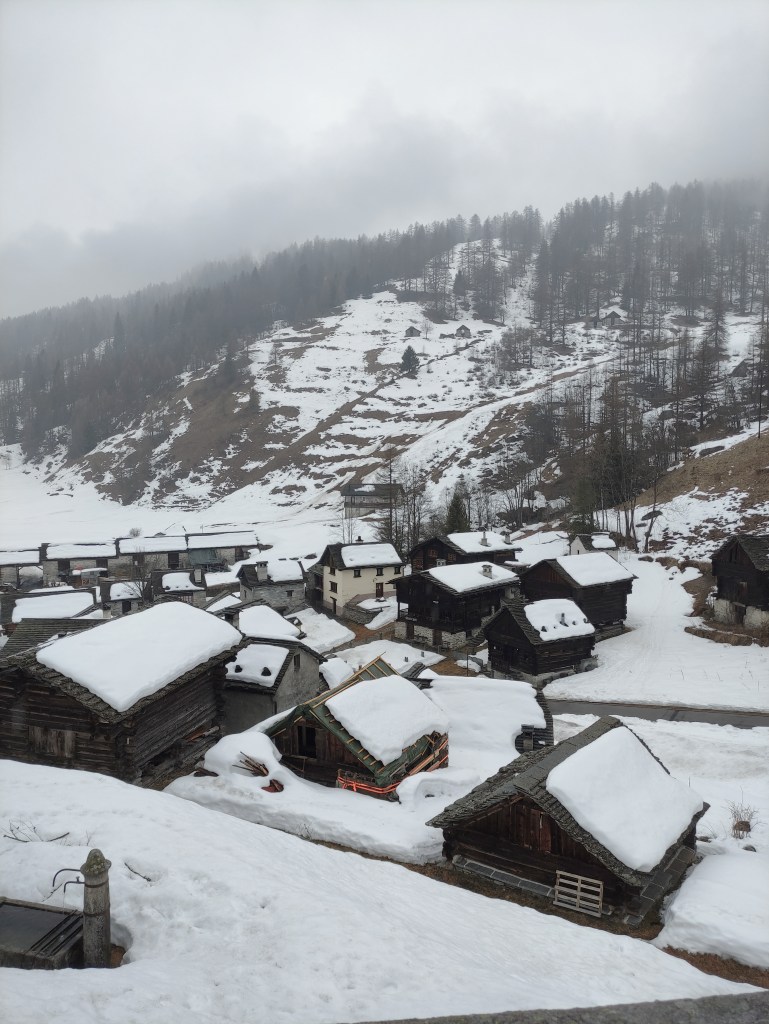 A trip to the Maggia Valley was definitely a must. Since the weather was a bit cloudy, I didn’t take Svenja to Fusio; instead, at the last minute, I turned toward Bosco Gurin. This small village, located at 1,506 meters above sea level, is a popular vacation destination, especially in the winter since usually there is snow.
