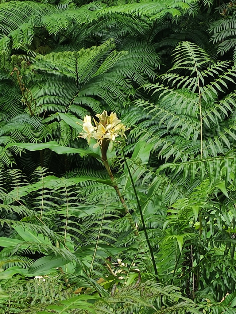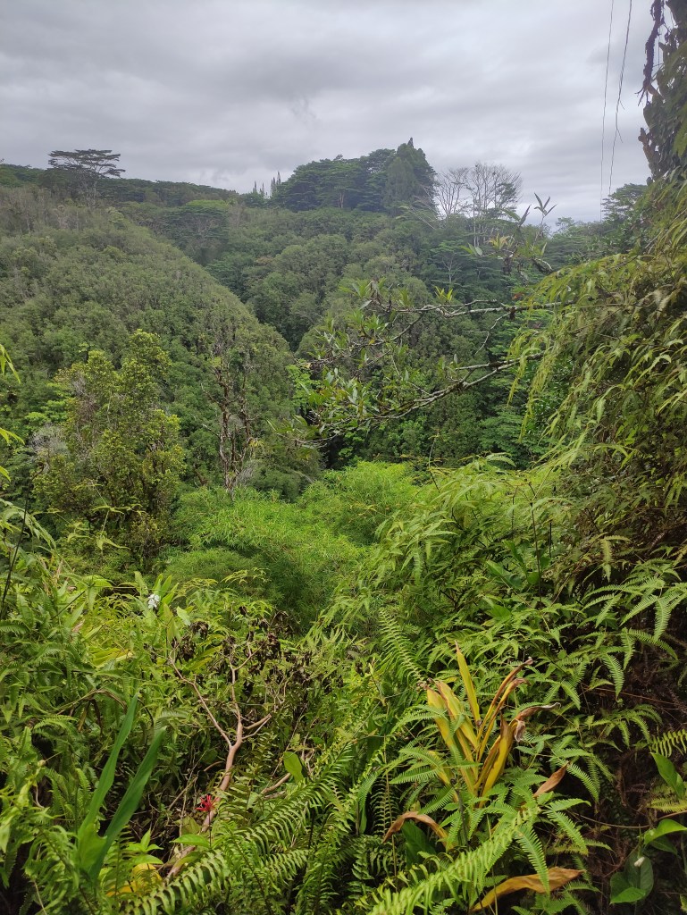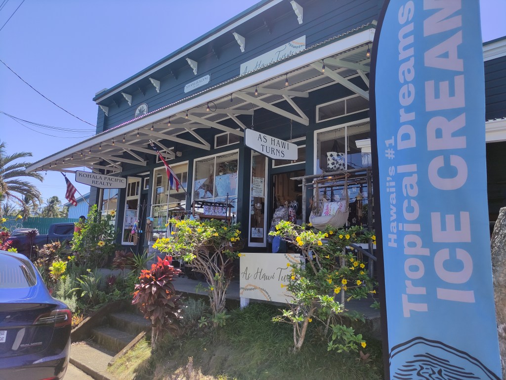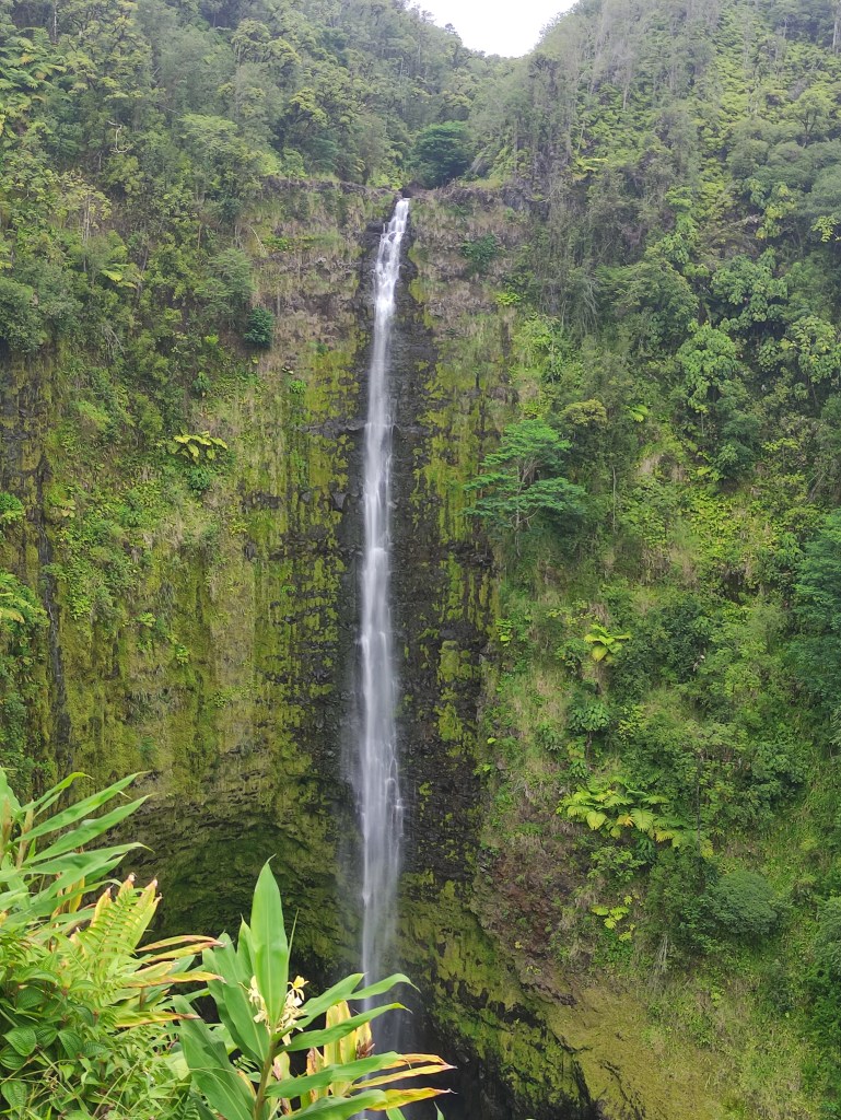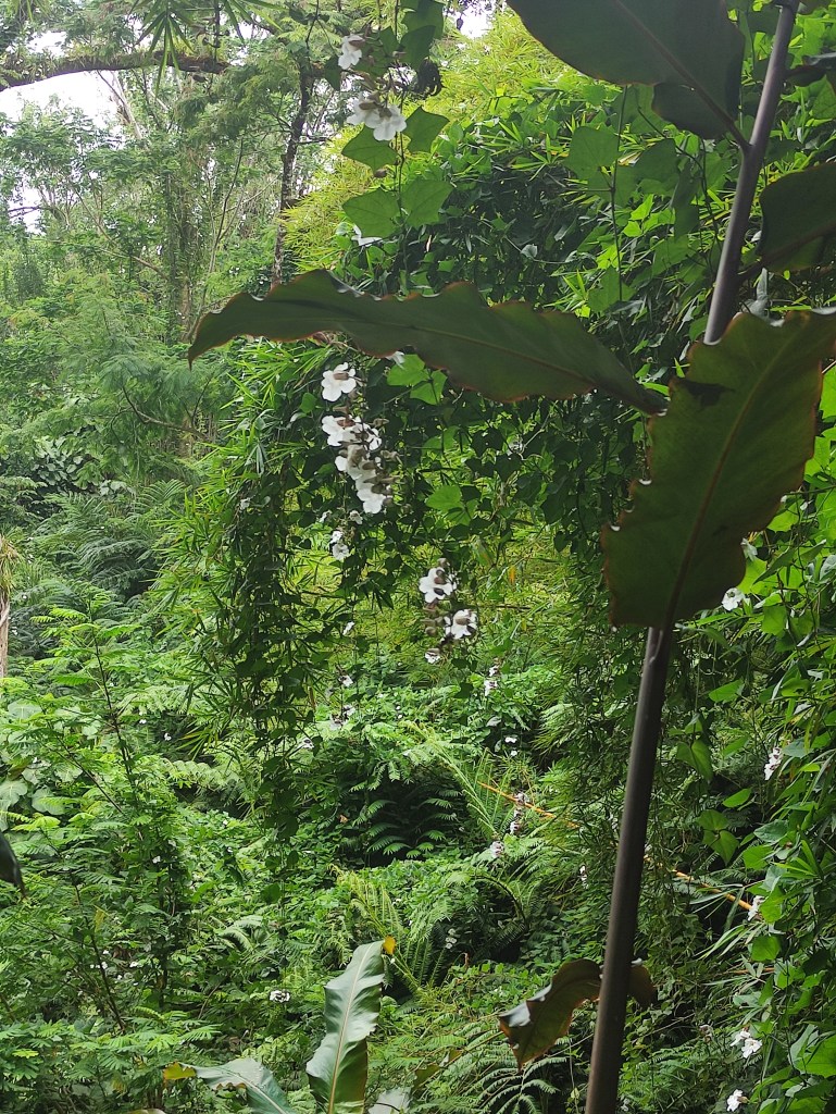 On the second day, Thursday, we took the car and headed towards Honoka’a and then to the Waipi’o Valley Lookout. The black sand beach far below can be reached by descending a steep trail. It wasn’t so much the easy descent, but the more than two-hour climb back up put us off. On the way there, we stopped at a hippie shop to buy fruit, then it was time for some macademia nuts and an excellent caffelatte at the Ahualoa Family Farm shop. This small family farm produces not only these delicious nuts but also coffee, which they sell in their cozy shop. After the coffee, which woke me up, we took a hike to Akaka Waterfall, passing through a dense tropical forest with stunning flowers!