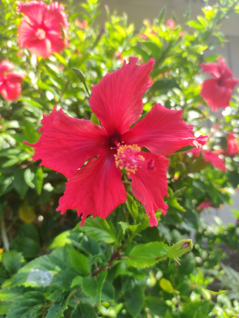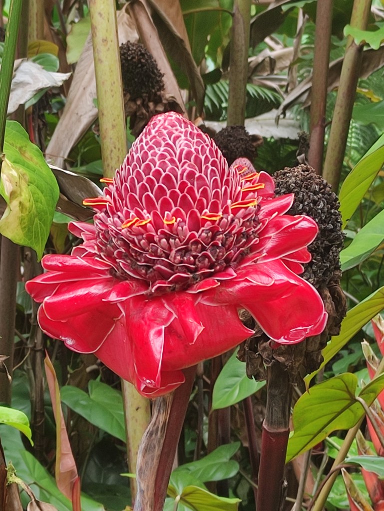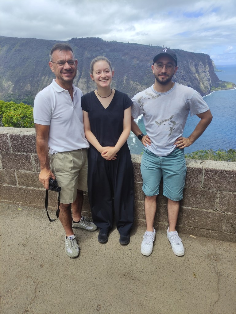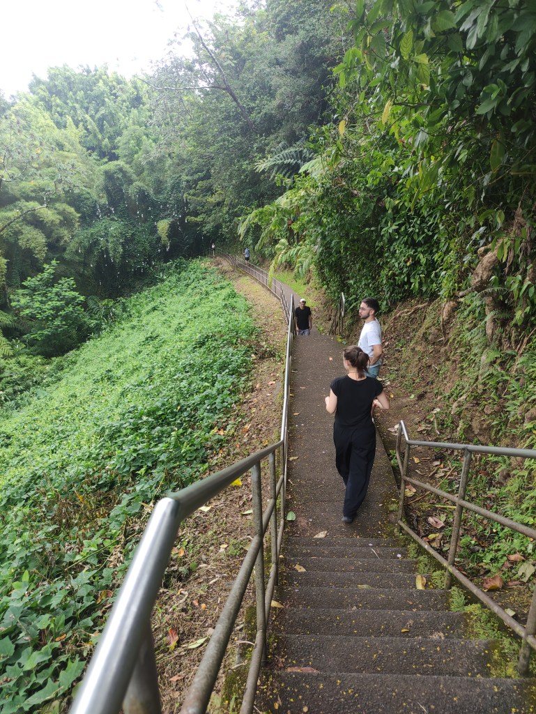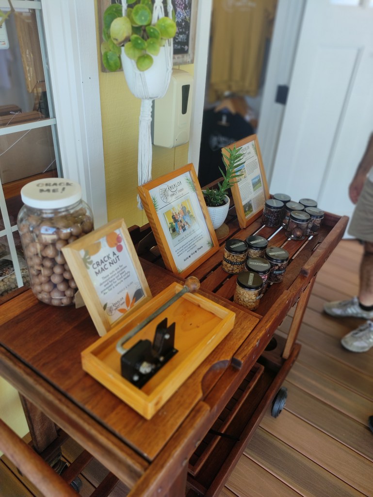On the second day, Thursday, we took the car and headed towards Honoka’a and then to the Waipi’o Valley Lookout. The black sand beach far below can be reached by descending a steep trail. It wasn’t so much the easy descent, but the more than two-hour climb back up put us off. On the way there, we stopped at a hippie shop to buy fruit, then it was time for some macademia nuts and an excellent caffelatte at the Ahualoa Family Farm shop. This small family farm produces not only these delicious nuts but also coffee, which they sell in their cozy shop. After the coffee, which woke me up, we took a hike to Akaka Waterfall, passing through a dense tropical forest with stunning flowers!