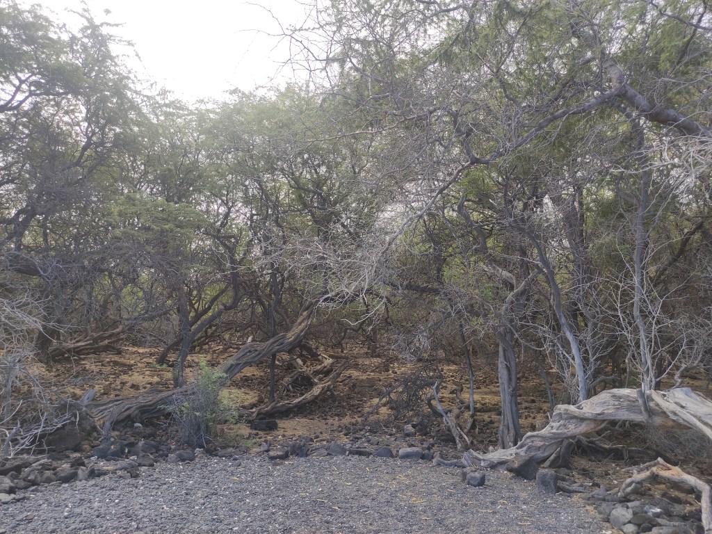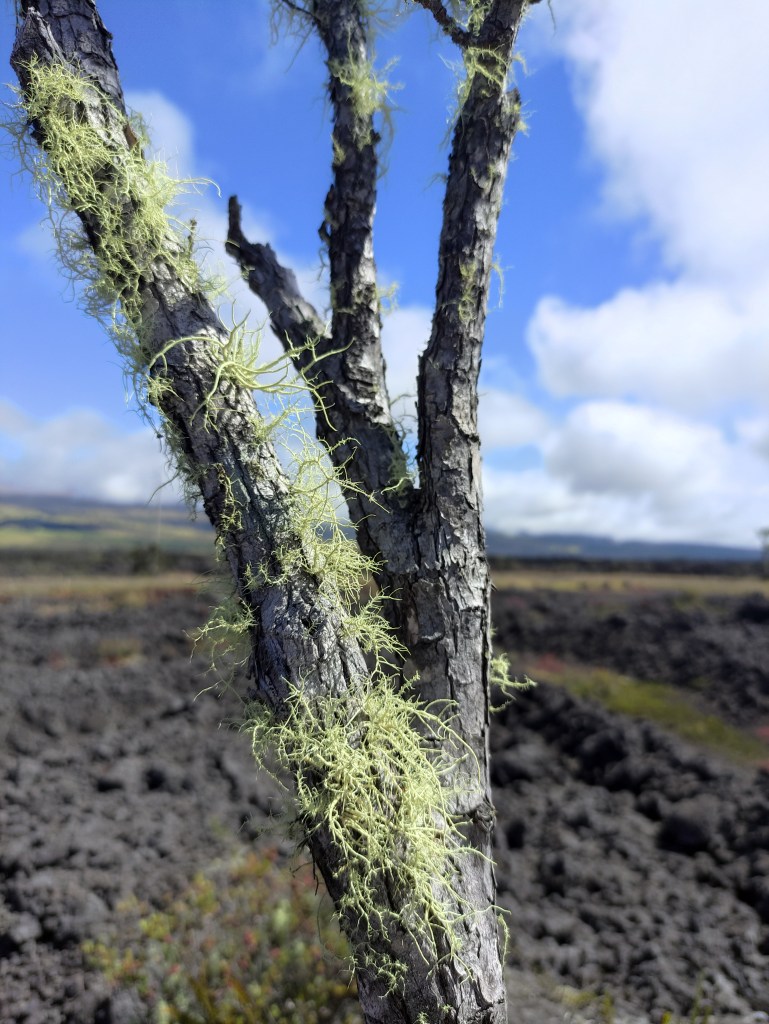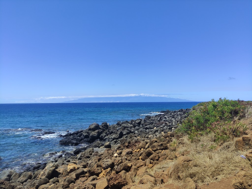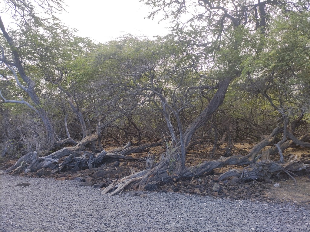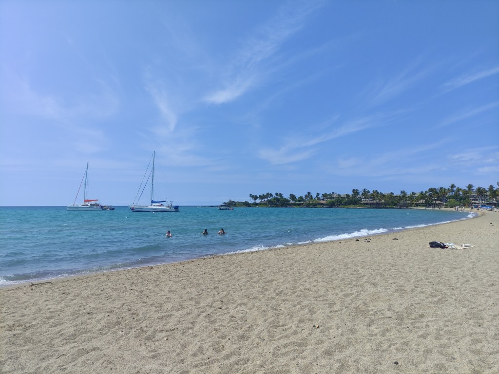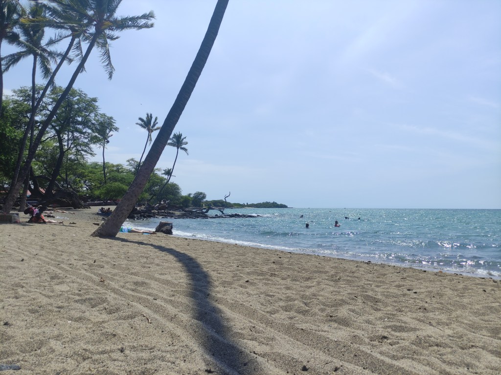 We spent the first day relaxing on the beach. The public beach of ‘Anaeho’omalu can be reached by walking along the Ku’uali’i, which partly extends right over an old lava flow. The landscape outside the resort’s perimeter is lunar. Everywhere lava rock, shades of gray and black, a few ocher-colored bushes… but this diverse beauty is mesmerizing.