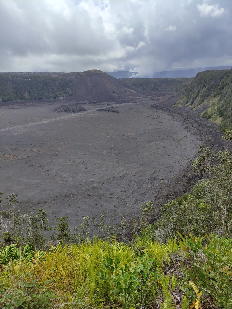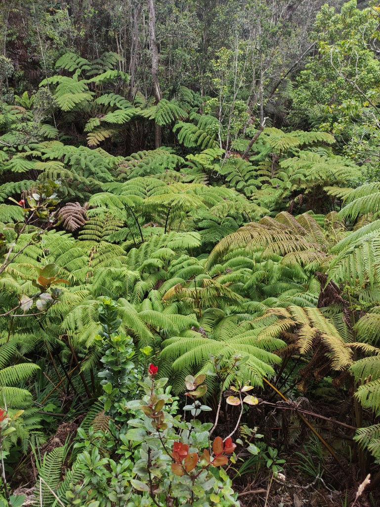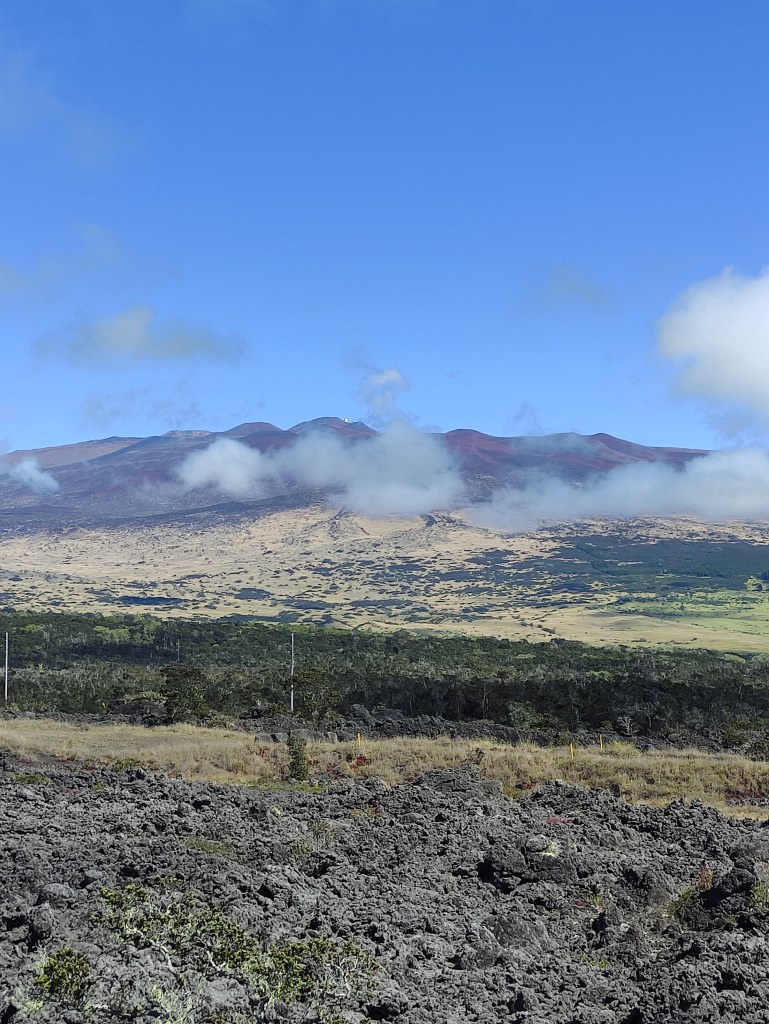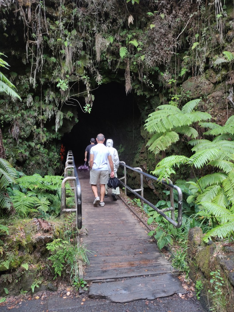 On Tuesday, September 9th, we took a volcano tour to visit fire-breathing Haleakala. For safety reasons, not all roads leading to the summits of the various volcanoes are open to tourists. The journey is very long and time-consuming. The first leg of the route leads to Waimea (north Kohala Coast). Then we turned right onto the Daniel K. Inouye Highway, crossing the old lava flow between the two volcanoes: Mauna Kea 13,679 feet and Mauna Loa 13,679 feet (the link will show you the actual situation of its activity). We continue towards Hilo to join the Saddle Road. We had already taken this route a couple of days earlier. We then turn southwest along the Hawai’i Belt Road to Hawai’i Volcanoes National Park (see the short film). In the National Park, we literally entered the Kilauea crater (slightly southeast of Mauna Loa). We listened with interest to the ranger’s explanations, which revealed that this volcano, or rather one of its craters, is very active and erupts every two weeks. This time, we wouldn’t see the eruption, which is expected in seven days. There are a multitude of hiking trails throughout the area that would certainly be worth exploring if we had more time. Once again, I found the flora of these places spectacular. Thinking of the lava flows, of the heat that the goddess Pele’s fire brought destruction everywhere, these stunning plants and flowers gave us paradoxical visions. As in earlier days, I just had to close my eyes to be transported to the pristine magic of Eden-like places on Earth. And once again, I wondered why Mankind is not capable of venerate the Planet instead of destroying it in every imaginable way. In the early afternoon, we drove the entire Chain of Crater Road (Naulu Trail) to the sea. We stopped at the Nฤhuku Lava Tube, a tubular lava formation you can walk through. The surrounding flora resembles that of the Jurassic period: an indescribable wonder. We then descended to the Hลlei Sea Arch, where the trail (Kaimu-Chain of Crater Rd. / Kalapana Emergency Access Rd.) is interrupted by an old lava flow and you can’t continue further east. The return was tiring for dad, who had been driving the entire time. We had to return along the same route we had taken, once again encountering rain and fog on the plateau.