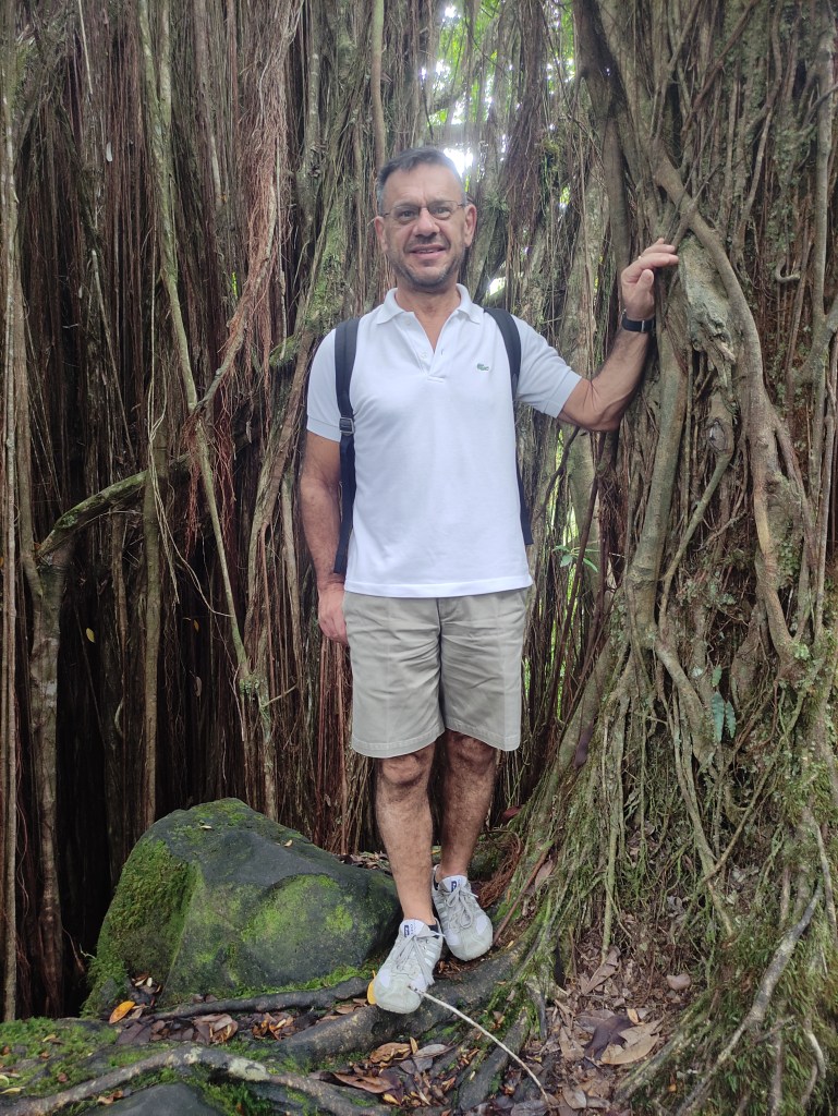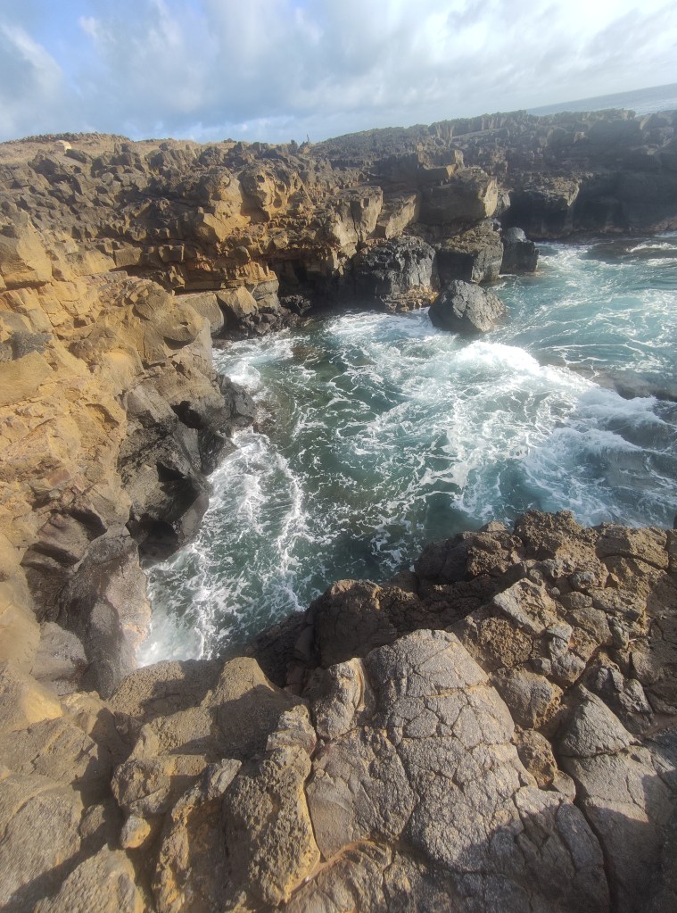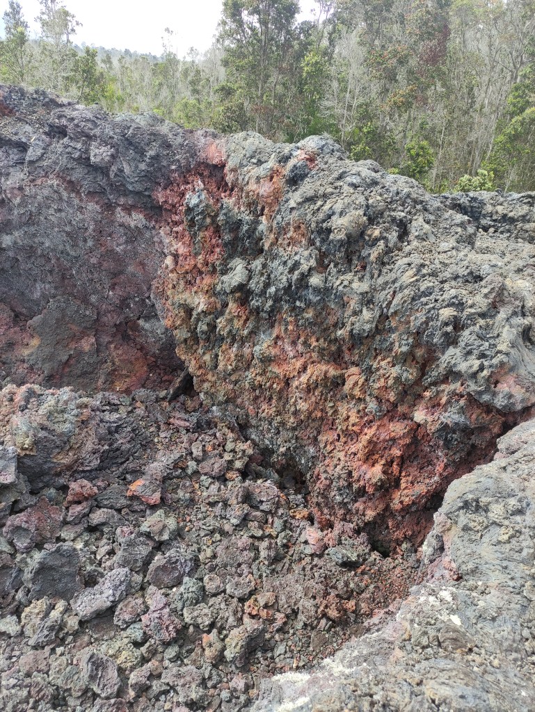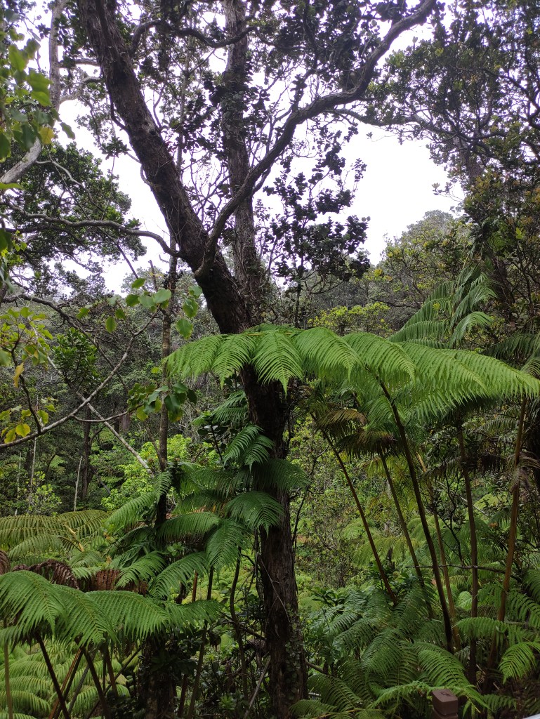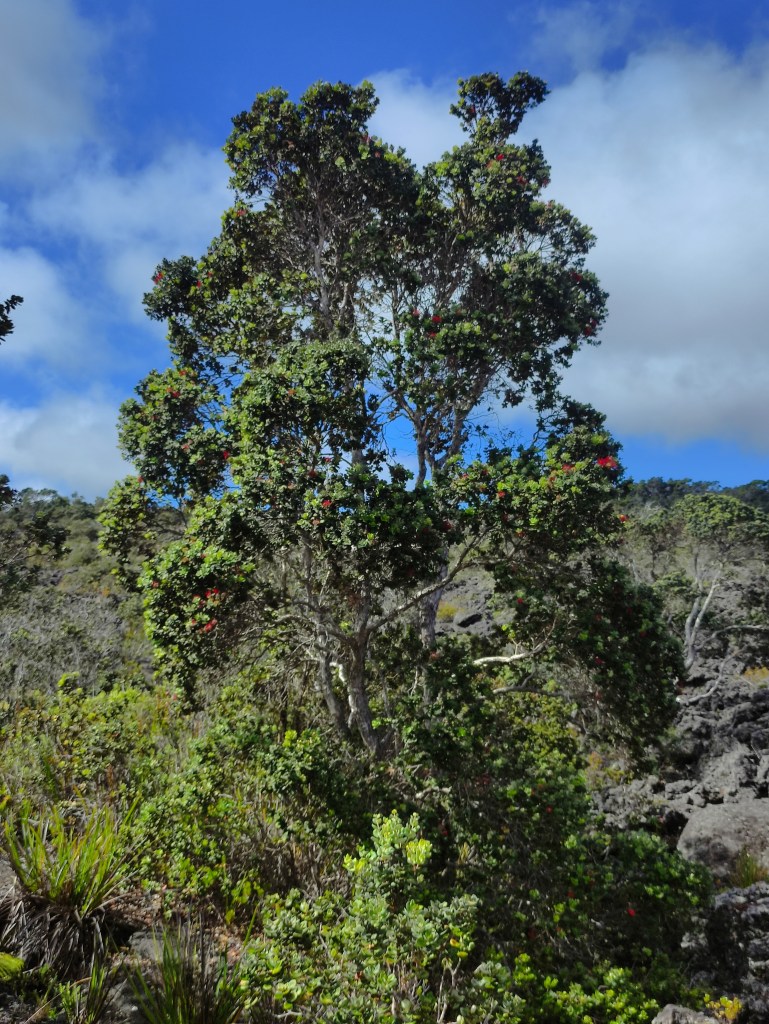 On Tuesday, September 9th, we took a volcano tour to visit fire-breathing Haleakala. For safety reasons, not all roads leading to the summits of the various volcanoes are open to tourists. The journey is very long and time-consuming. The first leg of the route leads to Waimea (north Kohala Coast). Then we turned right onto the Daniel K. Inouye Highway, crossing the old lava flow between the two volcanoes: Mauna Kea 13,679 feet and Mauna Loa 13,679 feet (the link will show you the actual situation of its activity). We continue towards Hilo to join the Saddle Road. We had already taken this route a couple of days earlier. We then turn southwest along the Hawai’i Belt Road to Hawai’i Volcanoes National Park (see the short film). In the National Park, we literally entered the Kilauea crater (slightly southeast of Mauna Loa). We listened with interest to the ranger’s explanations, which revealed that this volcano, or rather one of its craters, is very active and erupts every two weeks. This time, we wouldn’t see the eruption, which is expected in seven days. There are a multitude of hiking trails throughout the area that would certainly be worth exploring if we had more time. Once again, I found the flora of these places spectacular. Thinking of the lava flows, of the heat that the goddess Pele’s fire brought destruction everywhere, these stunning plants and flowers gave us paradoxical visions. As in earlier days, I just had to close my eyes to be transported to the pristine magic of Eden-like places on Earth. And once again, I wondered why Mankind is not capable of venerate the Planet instead of destroying it in every imaginable way. In the early afternoon, we drove the entire Chain of Crater Road (Naulu Trail) to the sea. We stopped at the Nฤhuku Lava Tube, a tubular lava formation you can walk through. The surrounding flora resembles that of the Jurassic period: an indescribable wonder. We then descended to the Hลlei Sea Arch, where the trail (Kaimu-Chain of Crater Rd. / Kalapana Emergency Access Rd.) is interrupted by an old lava flow and you can’t continue further east. The return was tiring for dad, who had been driving the entire time. We had to return along the same route we had taken, once again encountering rain and fog on the plateau.