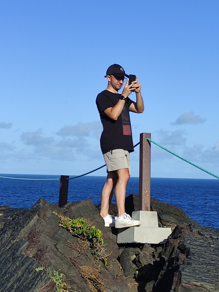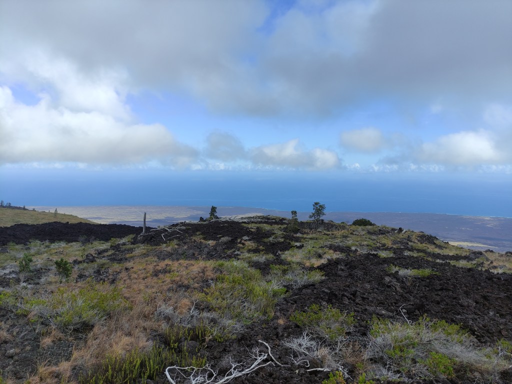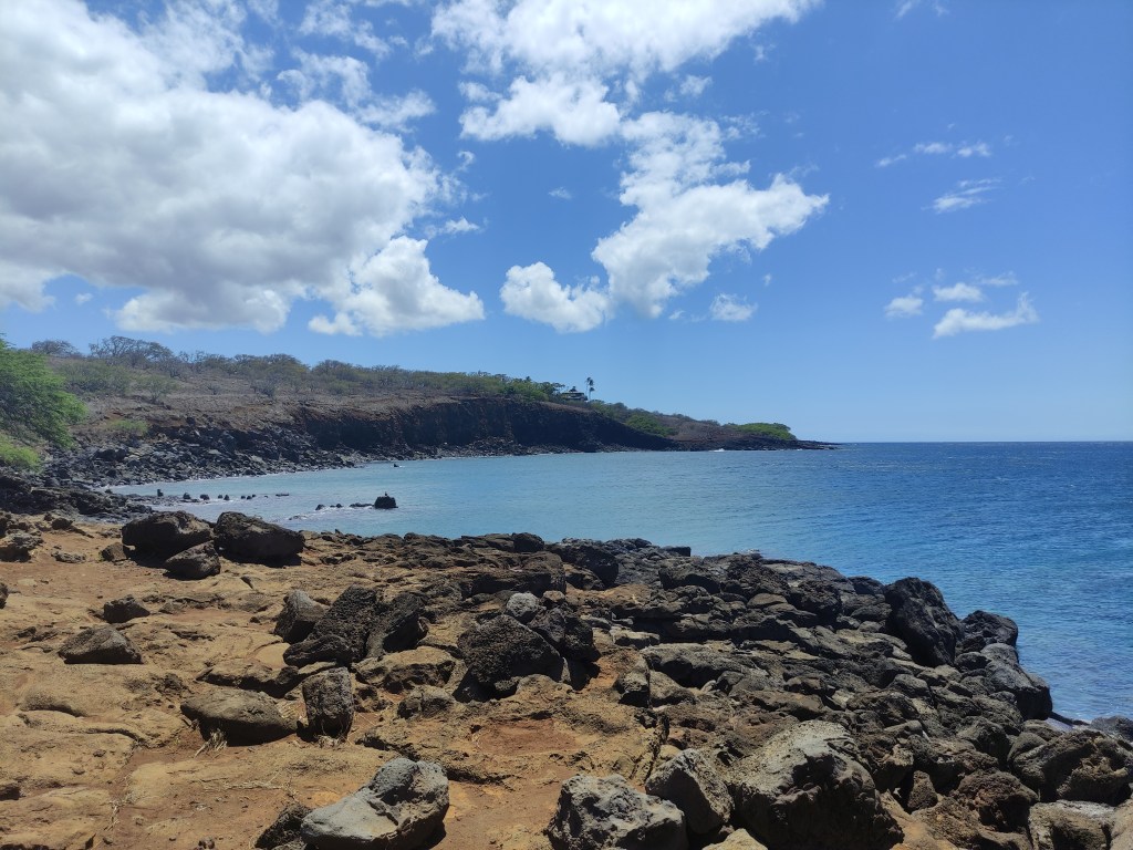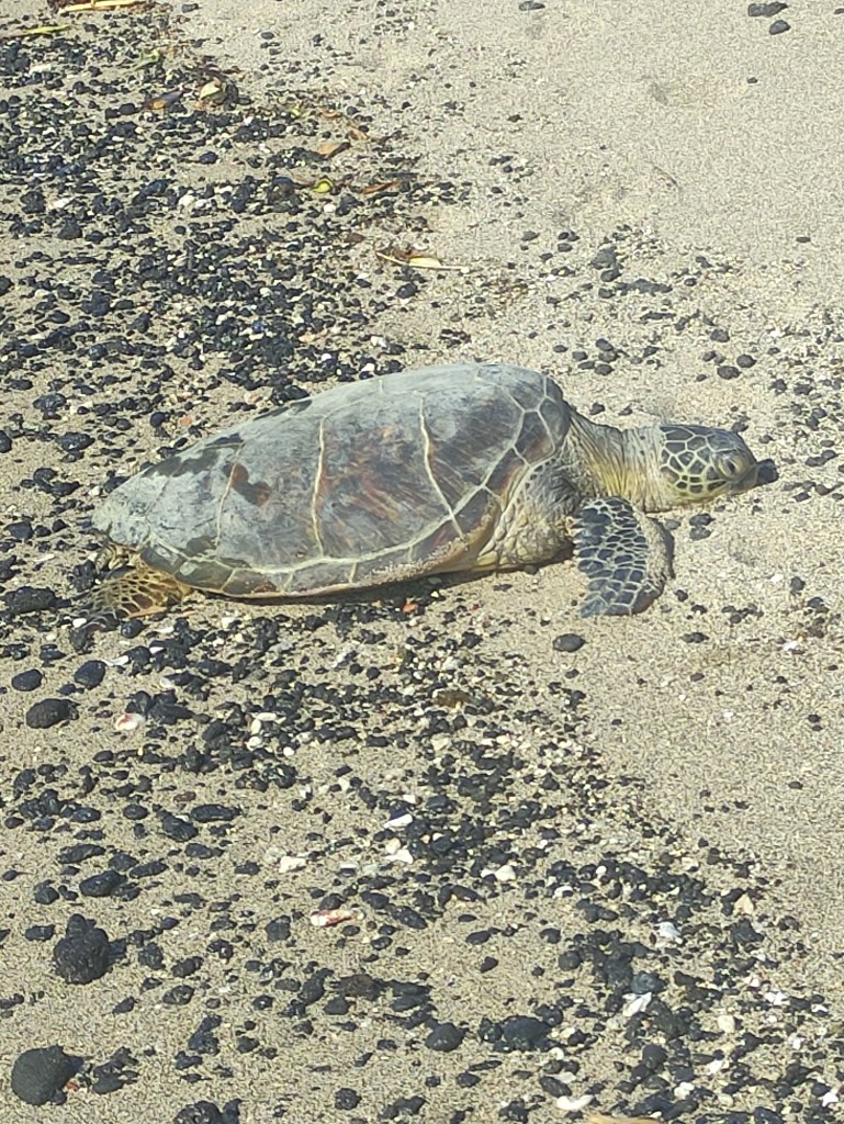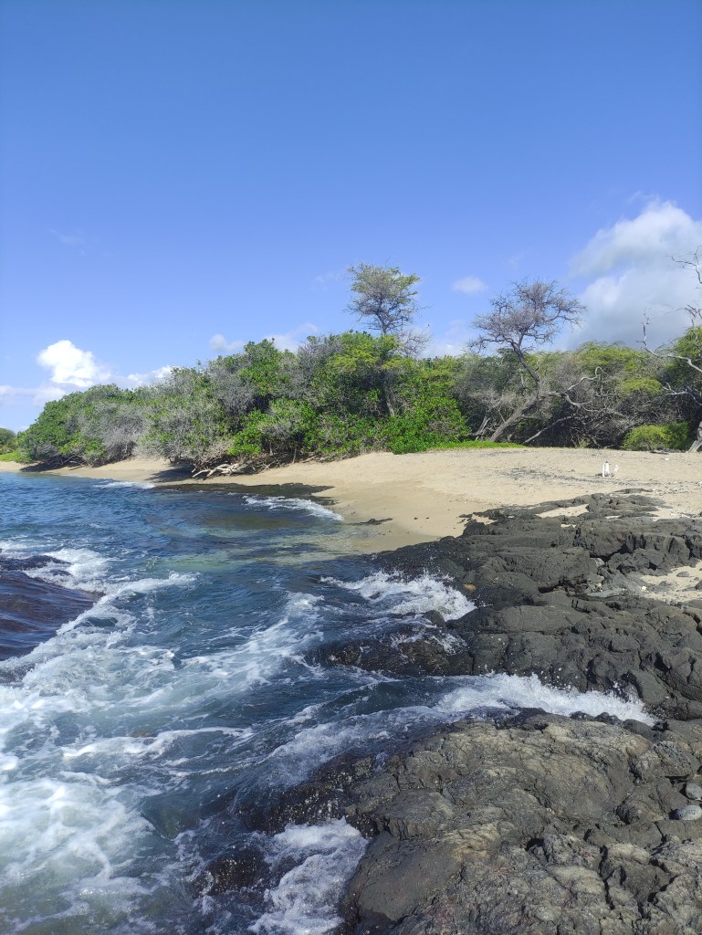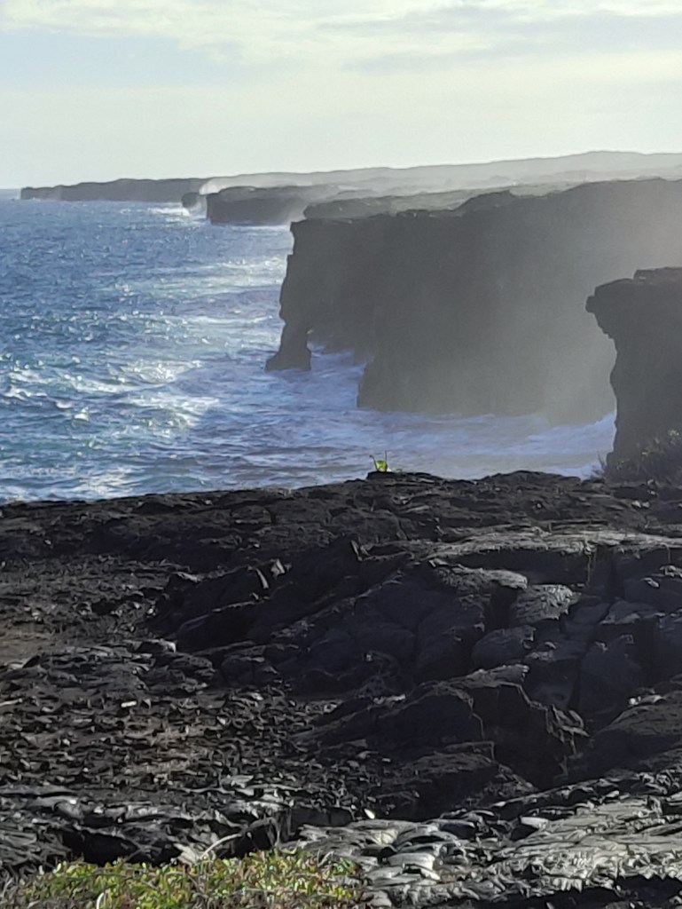 up everywhere, asking for cuddles and a little attention. I believe this black cat is part of the resort: sweet and affectionate, he was always at our door. We didn’t let him in so as not to develop habits that, unlike us, are incomprehensible to those who are allergic to cats. On Wednesday, we once again enjoyed the beach. Walking along the shore, we spotted the large Hawaiian green turtles that come ashore to rest. They are strictly protected, and you should avoid approaching them, always keeping several meters away to avoid disturbing them. We also saw several in the water, searching for food. You tell they were there because their heads would occasionally pop out of the water to breathe. The next day, we headed back to the southernmost tip of the United States. Along Hawai’i Belt Rd., passing through Kailua, we stayed on the Mama’ahoa Bypassroad on the promontory and then on Napaopoo Rd., which descends the cliff toward the coast. We stopped at several scenic spots to admire the ocean and the island’s countless wild beaches. Some places were off-limits (gates and no-entry signs), the reasons for which are unclear. Several properties must have been private, and among the vegetation, we glimpsed luxurious villas directly overlooking the beach. However, based on the information, the beach itself should have been “public” and accessible. Here, as on the plateau between the two volcanoes, we saw plenty of wild goats. The route is a bit dangerous. Two cars can’t easily pass each other. But it’s worth it for the stunning views. From road to road, we finally reached S. Point Dr., which took us to our destination, Kalae Point.