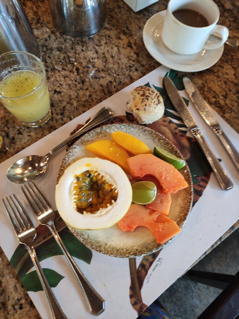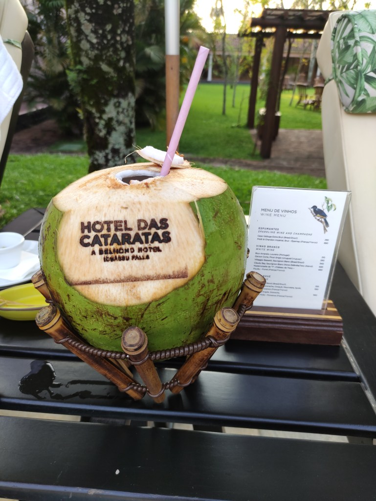L’albergo Belmond Das Cataratas è semplicemente straordinario e molto elegante: dalla camera vedevo ed udivo il fragore delle cascate. Quando lavoravo nell’aviazione, eravamo sempre alloggiati in alberghi di cinque stelle, ma ammetto che sono pochi i luoghi al mondo che potrei mettere a paragone di quest’albergo, specialmente per la sua ubicazione e cura del dettaglio. Dopo un buona buona caipirinha come aperitivo, la cena è stata ottima ed ho potuto gustare cibo adatto alla mia coscienza ed etica.