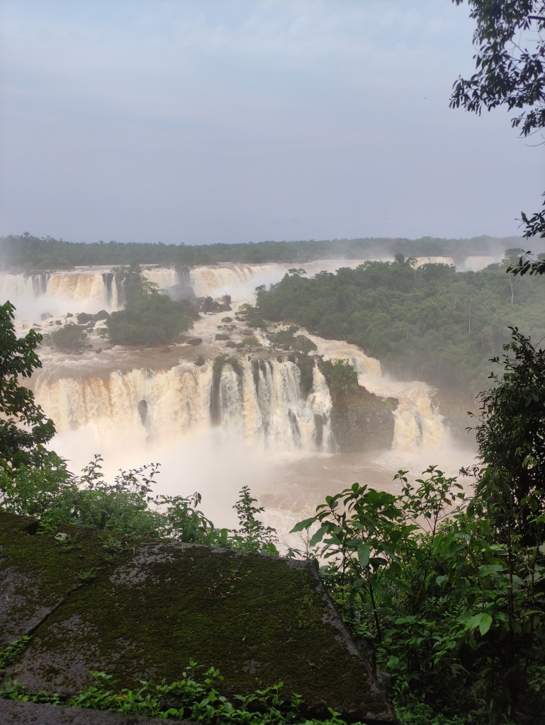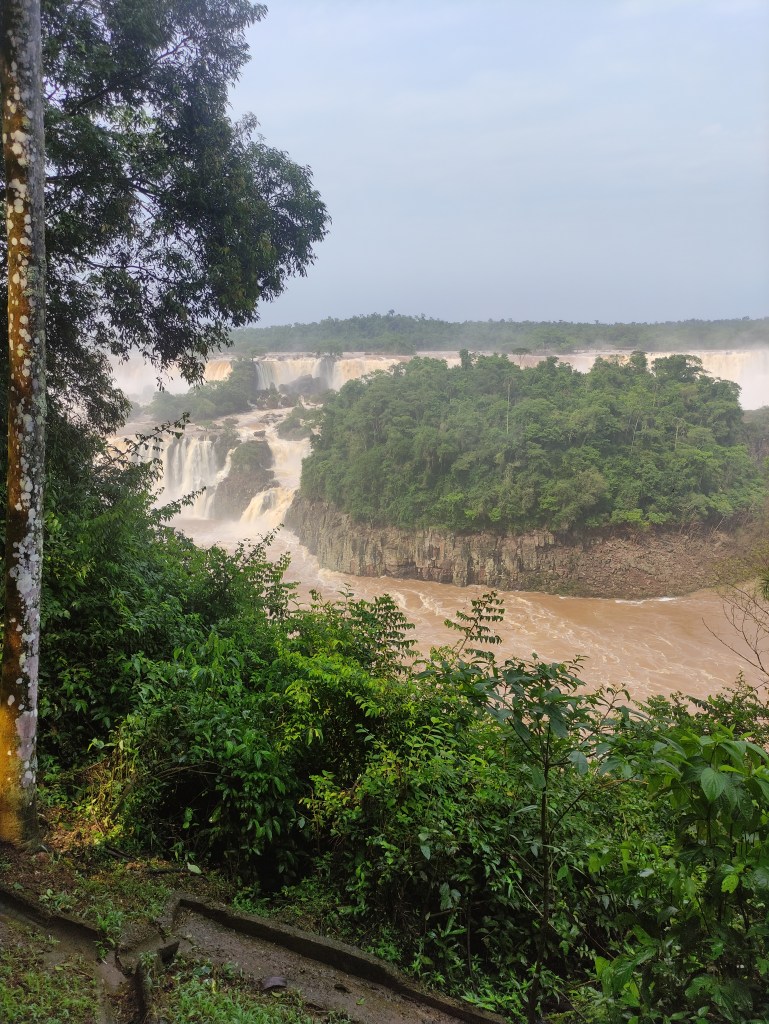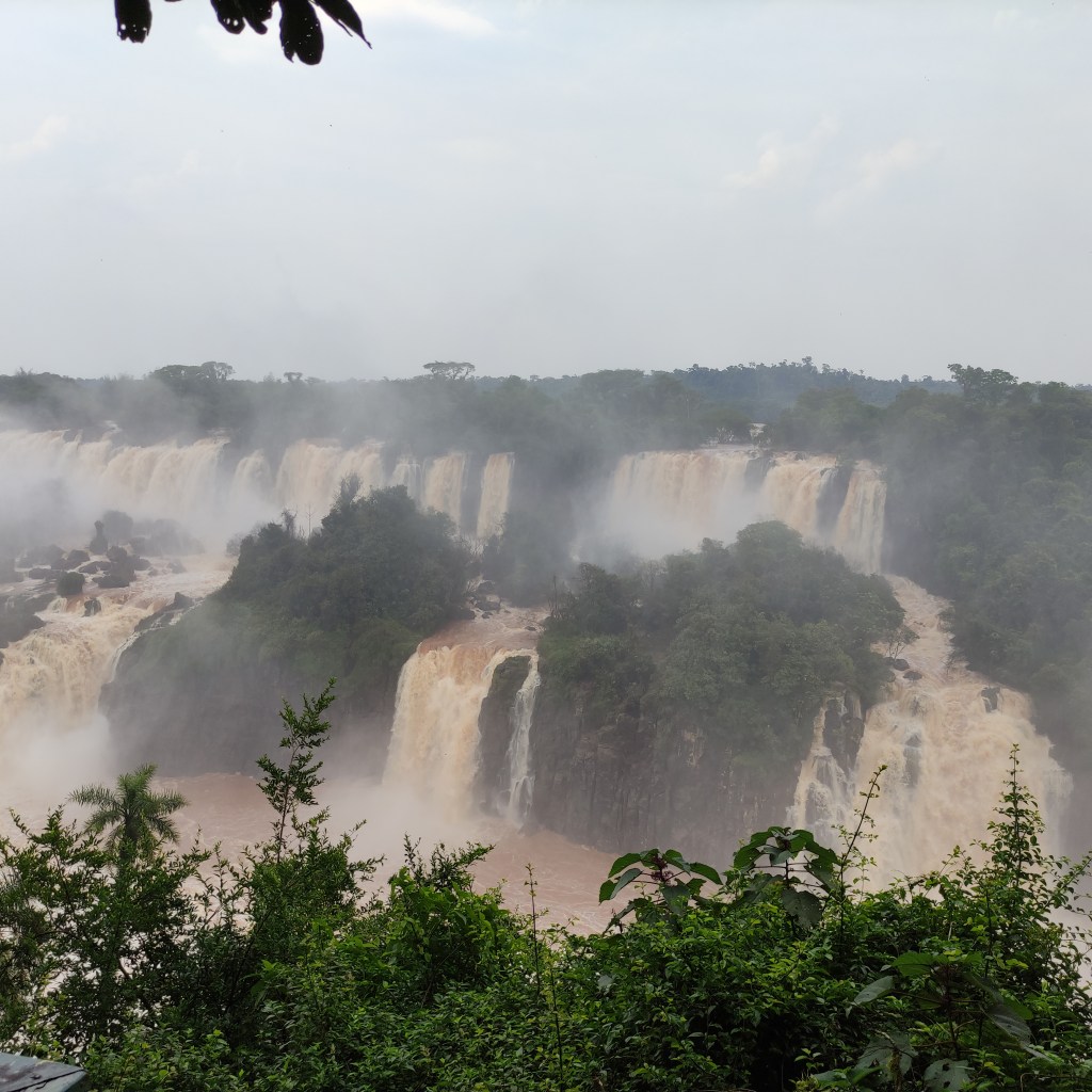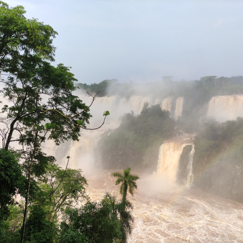 Il mercoledì 15.11.2023 dopo un’abbondante colazione, abbiamo fatto la prima lunga passeggiata sul sentiero che costeggia le varie cascate. Il “sistema” acqueo consiste di 275 cascate, con altezze fino a 70 metri, lungo 4 chilometri sull’omonimo fiume Iguazú. Vi ero già stata molti anni or sono, ad inizio 1990, ma c’era poca acqua e l’effetto non era paragonabile. Questa volta, laortuna vuole che la passerella che si addentra fino a metà della cascata più alta, era stata riaperta solo un paio di giorni prima a seguito delle piogge torrenziali che aveva fatto innalzare paurosamente il fiume provocando severi danni dalla parte argentina strappando anche la passerella pedonale (che non era ancora stata riparata). Iguazú National Park è patrimonio mondiale UNESCO e questi scenari spettacolari sono stati anche “location” di molti film famosi, esso è suddiviso tra le nazioni di Brasile, Argentina e Paraguay.