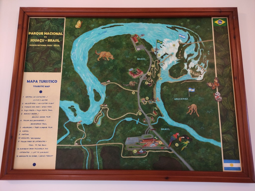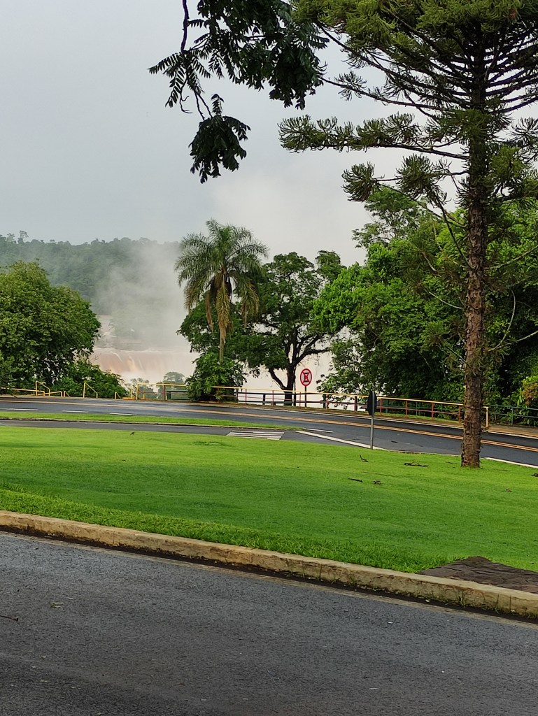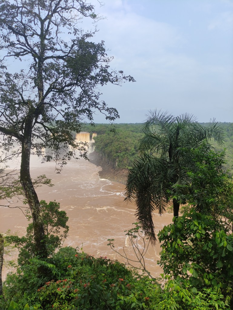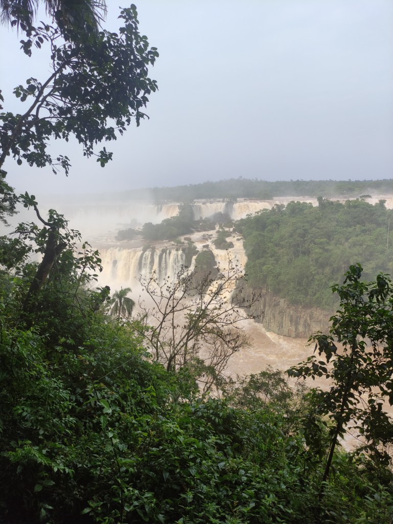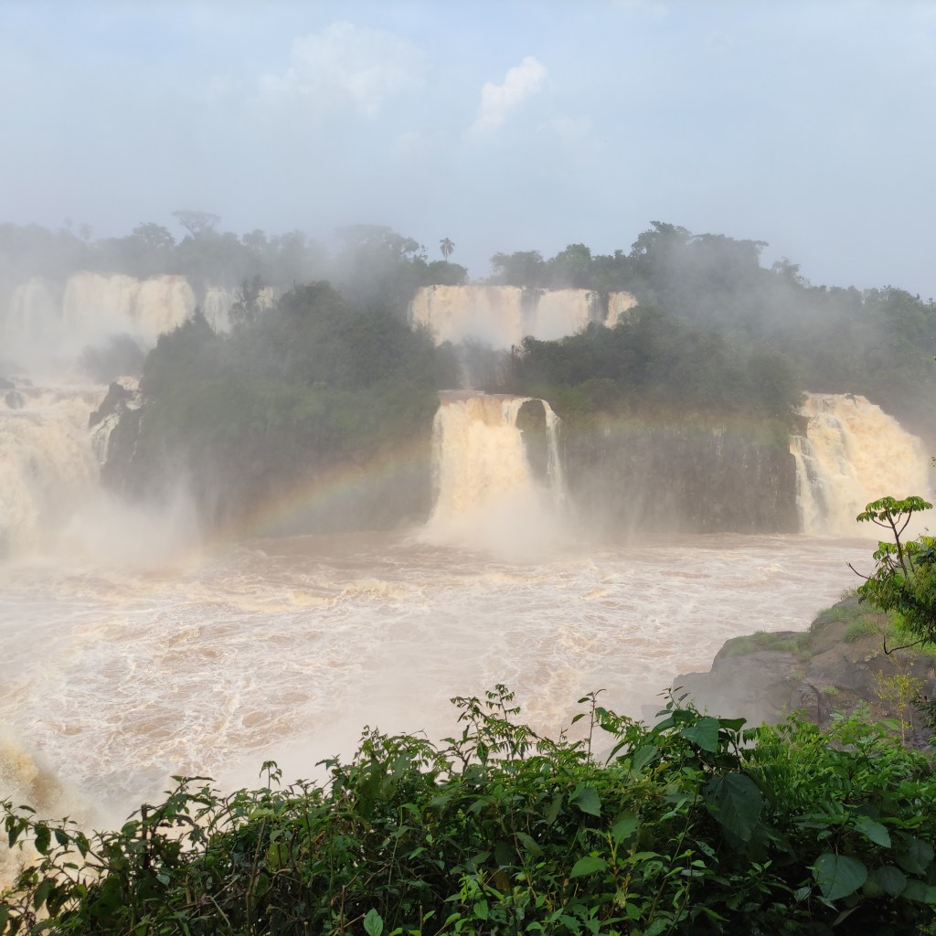 Il mercoledì 15.11.2023 dopo un’abbondante colazione, abbiamo fatto la prima lunga passeggiata sul sentiero che costeggia le varie cascate. Il “sistema” acqueo consiste di 275 cascate, con altezze fino a 70 metri, lungo 4 chilometri sull’omonimo fiume Iguazú. Vi ero già stata molti anni or sono, ad inizio 1990, ma c’era poca acqua e l’effetto non era paragonabile. Questa volta, laortuna vuole che la passerella che si addentra fino a metà della cascata più alta, era stata riaperta solo un paio di giorni prima a seguito delle piogge torrenziali che aveva fatto innalzare paurosamente il fiume provocando severi danni dalla parte argentina strappando anche la passerella pedonale (che non era ancora stata riparata). Iguazú National Park è patrimonio mondiale UNESCO e questi scenari spettacolari sono stati anche “location” di molti film famosi, esso è suddiviso tra le nazioni di Brasile, Argentina e Paraguay.