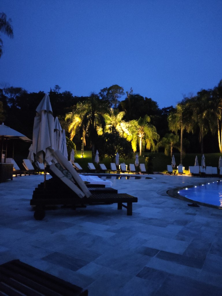 Abbiamo vissuto una sorta di “telenovela” della quale a tutt’oggi non sappiamo la vera ragione che ha causato il ritardo di 3 ore del volo, con cambio dell’equipaggio ed incazzatura allucinante di alcuni passeggeri che hanno minacciato l’equipaggio. La fortuna vuole che eravamo tutti e sei seduti nelle prime file, evitandoci d’avere panico visto la temperatura che andava aumentando con i minuti che passavano. Quando finalmente è arrivato il nuovo equipaggio (che ci ha fatto dubitare che il problema non fosse tecnico ma piuttosto legato alle Flight Duty Regulations dei piloti e personale di cabina), ci siamo tranquillizzati. Comunque siamo arrivati all’albergo Belmond Hotel Das Cataratas con parecchio ritardo e nel bel mezzo della notte .