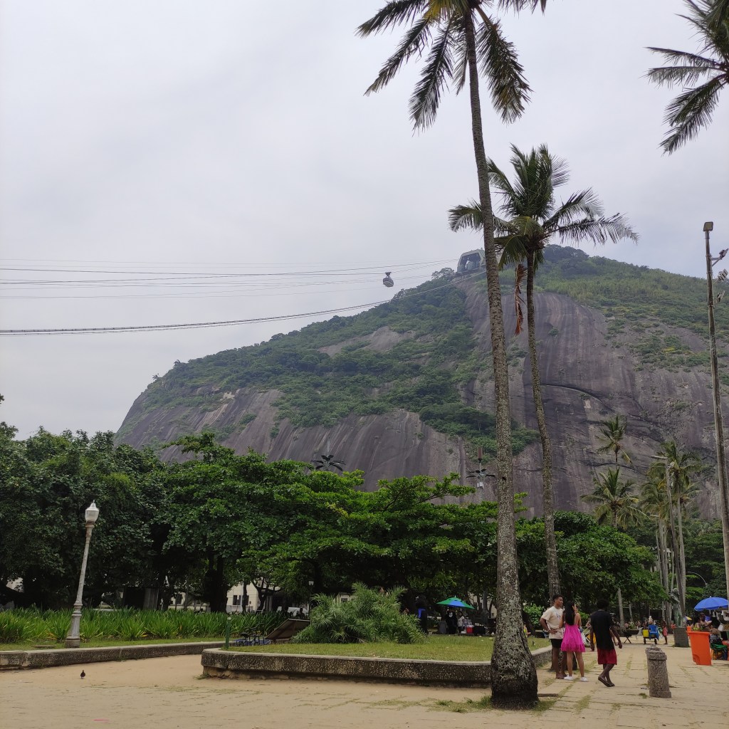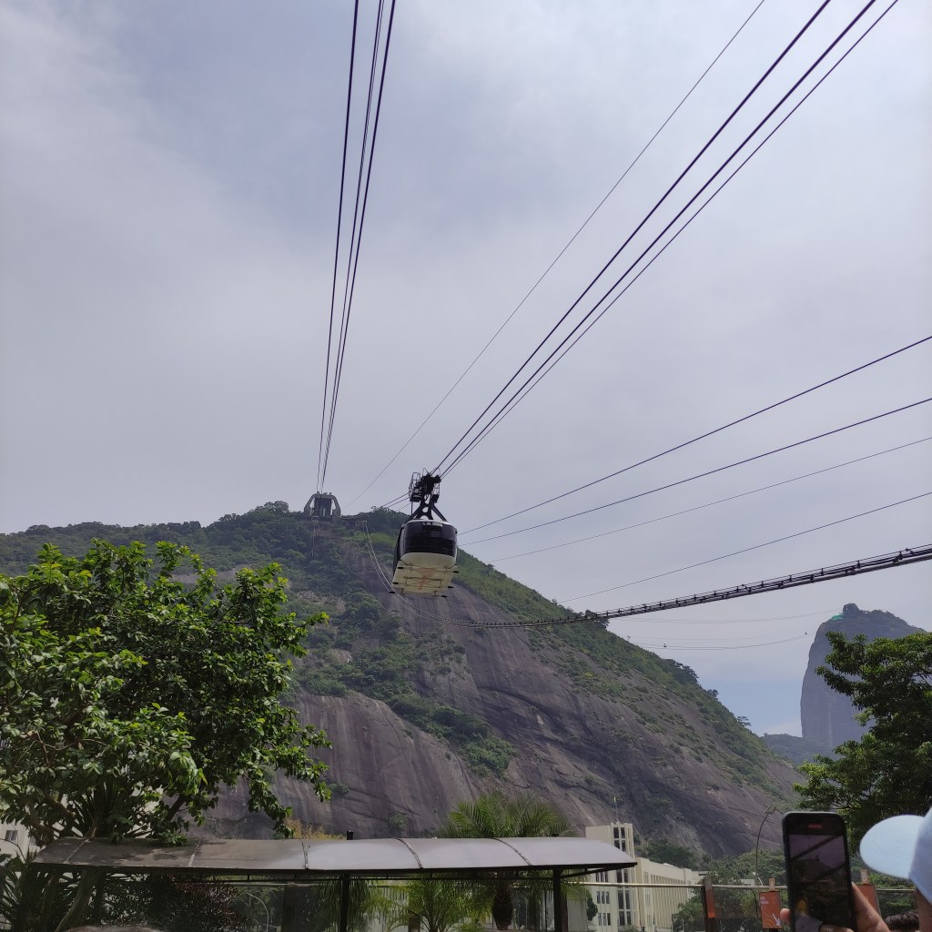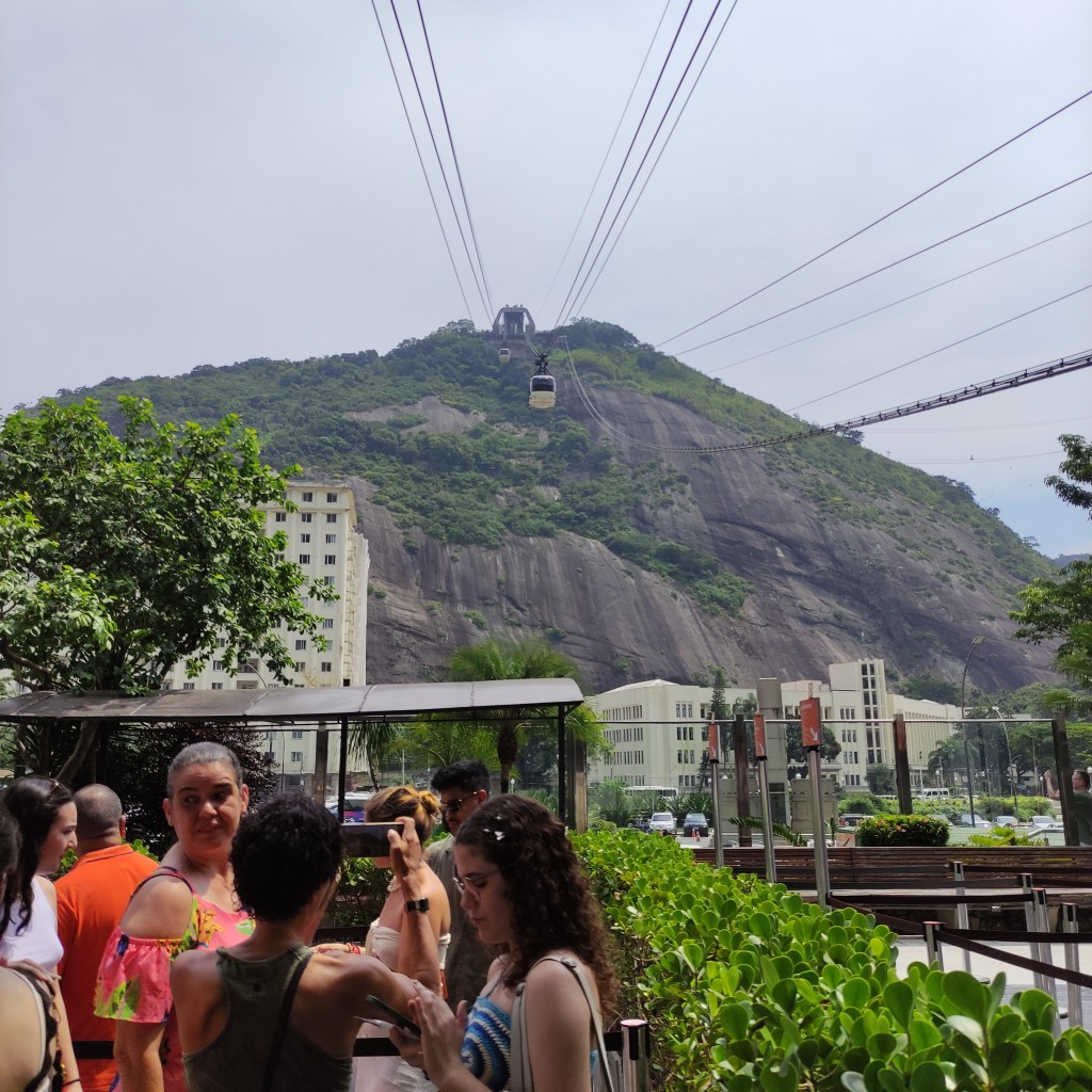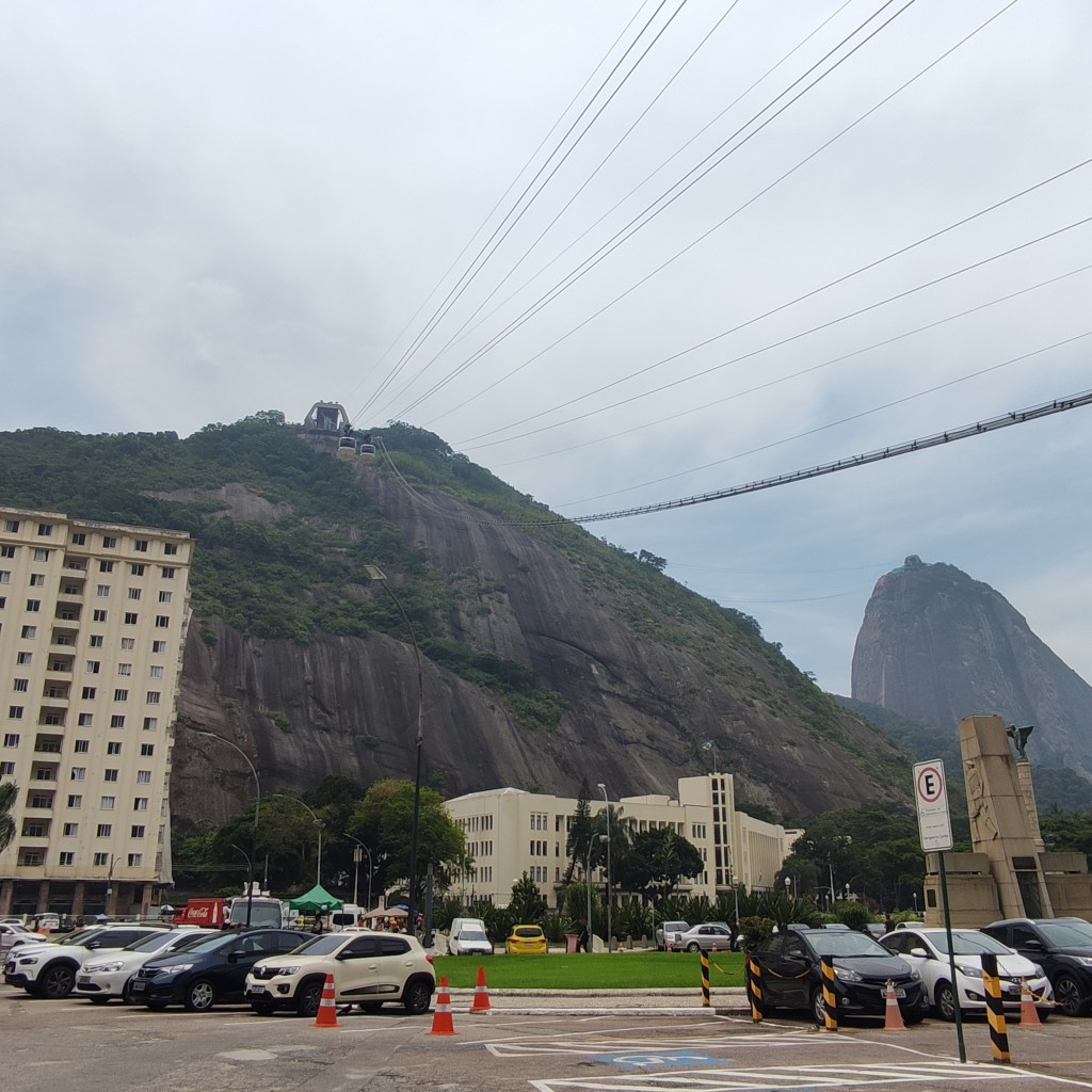 Il venerdì 17.11.2023 eravamo già alla scoperta della città carioca con temperature da capogiro schizzate fino a 58°. Ammetto che anche se mi piace il caldo, era davvero oltre il limite di sopportazione, con rischi severi di malore (cosa che è accaduto ad una persona del nostro gruppo). Il primo giorno era riservato alla visita al Pão de Azúcar da noi raggiunto con le due funivie che lo collegano al morro Urca. Tutta la zona è il parco nazionale Bondinho, conosciuto in tutto il mondo ed evidentemente protetto e mantenuto molto pulito. Purtroppo non si può dire la stessa cosa di molte parti della città dove, forse per la mancanza d’infrastrutture pubbliche o per l’insensibilità dei locali e dei turisti, gli appositi contenitori per l’immondizia vengono ignorati. Lungo l’escursione che abbiamo fatto sulla littorale girando nel Barrio da Urca con la praia de Botafogo abbiamo anche visto parecchie case e ville in vendita.