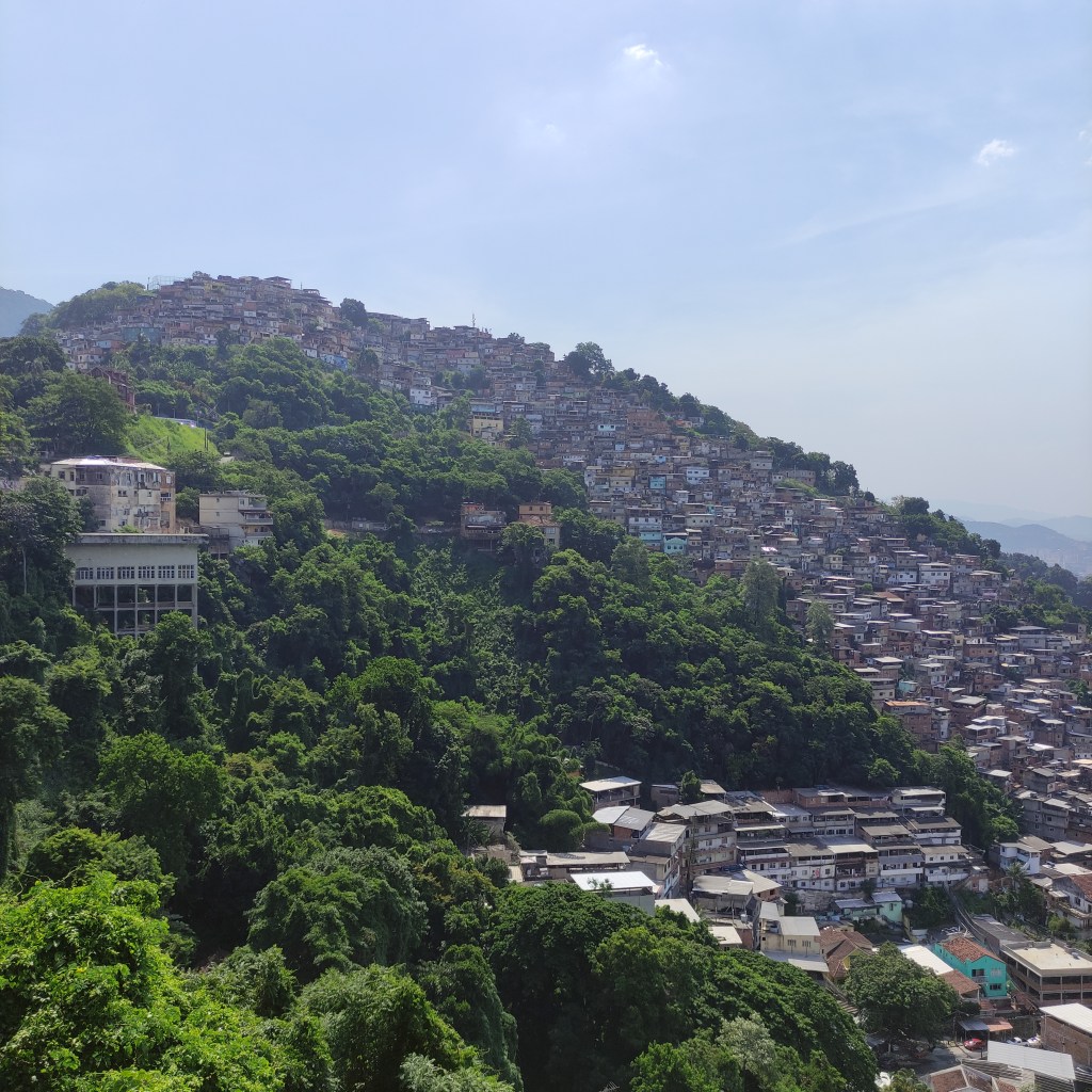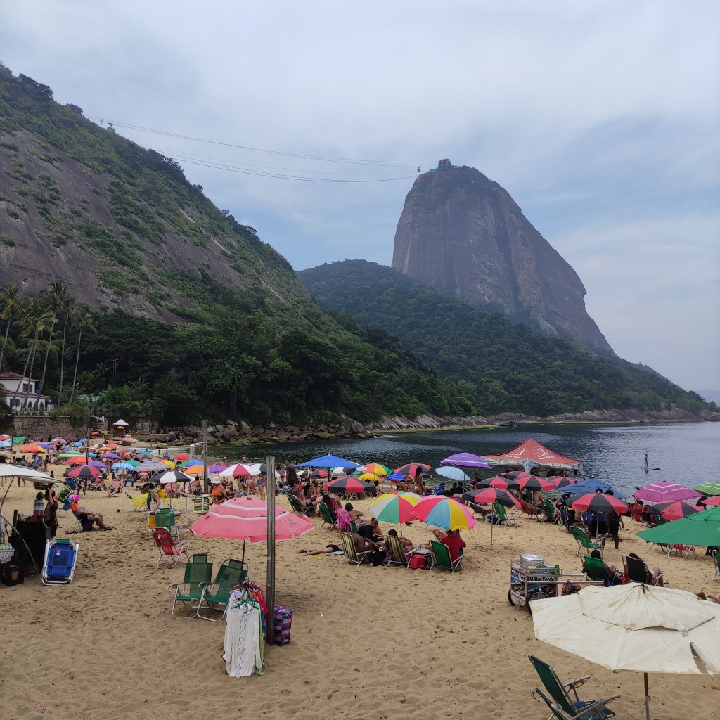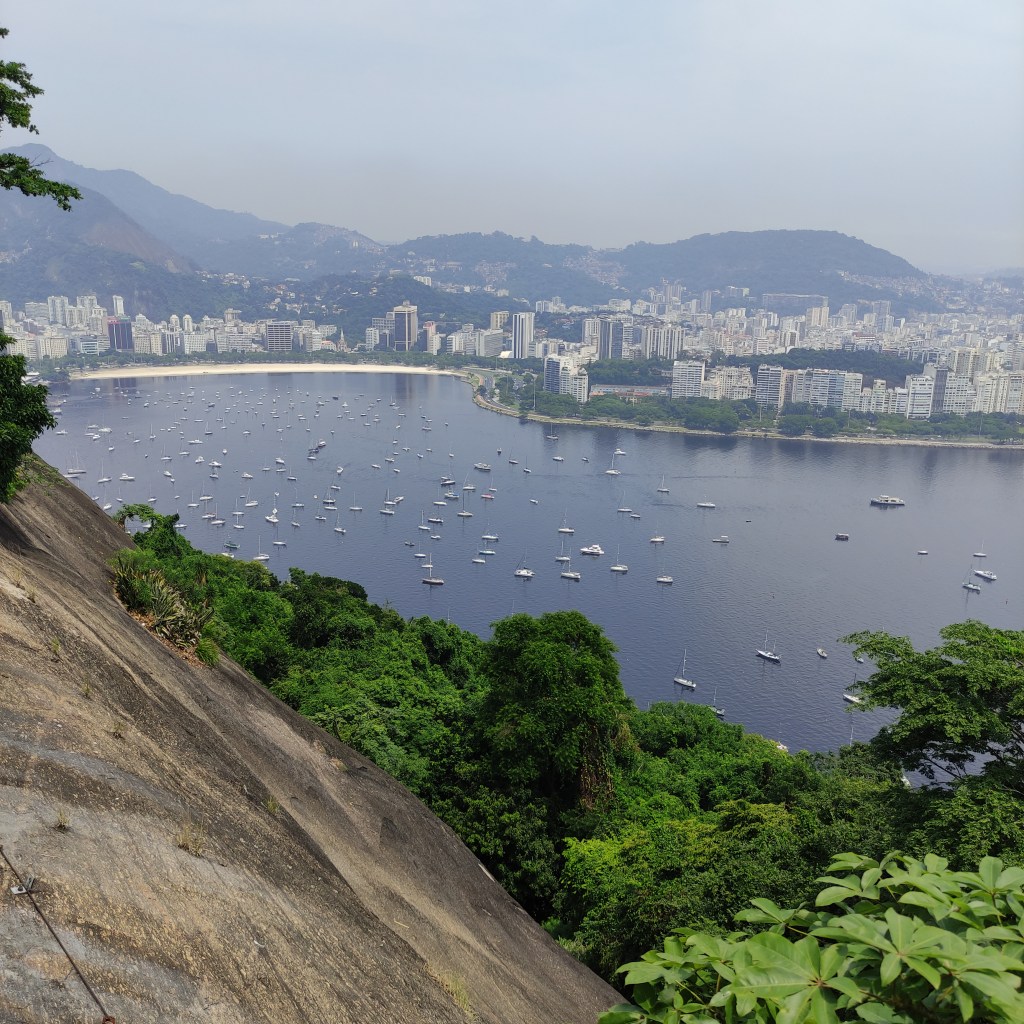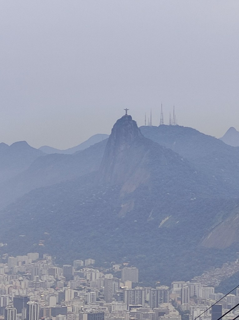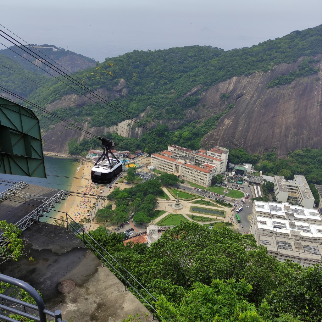 Il venerdì 17.11.2023 eravamo già alla scoperta della città carioca con temperature da capogiro schizzate fino a 58°. Ammetto che anche se mi piace il caldo, era davvero oltre il limite di sopportazione, con rischi severi di malore (cosa che è accaduto ad una persona del nostro gruppo). Il primo giorno era riservato alla visita al Pão de Azúcar da noi raggiunto con le due funivie che lo collegano al morro Urca. Tutta la zona è il parco nazionale Bondinho, conosciuto in tutto il mondo ed evidentemente protetto e mantenuto molto pulito. Purtroppo non si può dire la stessa cosa di molte parti della città dove, forse per la mancanza d’infrastrutture pubbliche o per l’insensibilità dei locali e dei turisti, gli appositi contenitori per l’immondizia vengono ignorati. Lungo l’escursione che abbiamo fatto sulla littorale girando nel Barrio da Urca con la praia de Botafogo abbiamo anche visto parecchie case e ville in vendita.