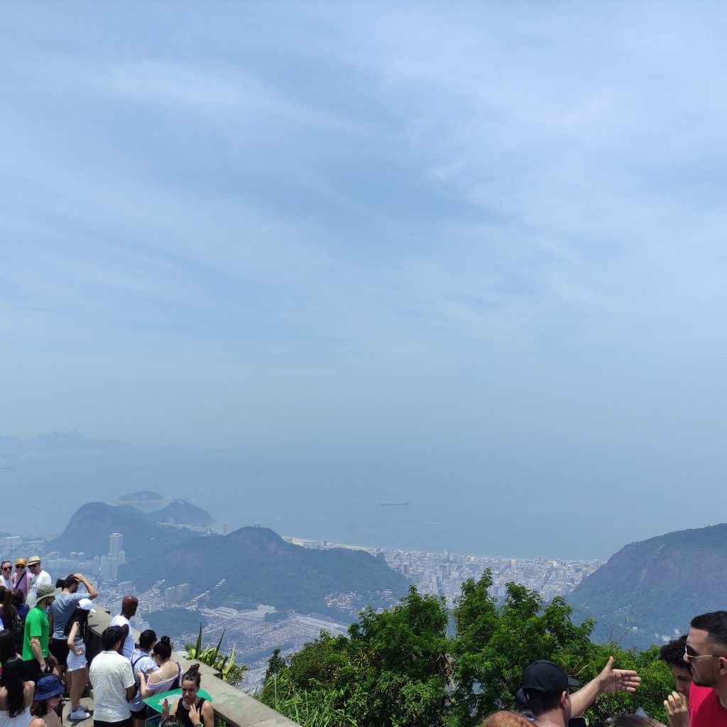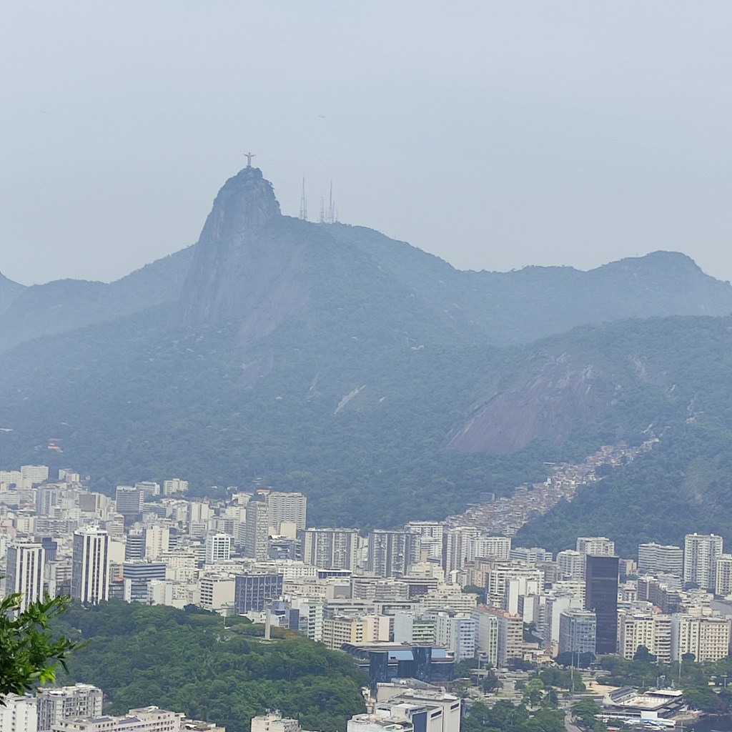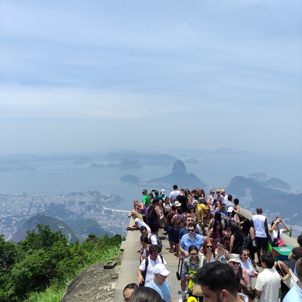 Il sabato 18.11.2023 era prevista la visita al Corcovado con l’immensa statua del Christo redendor. Dalla Praça São Judas Tadeu siamo saliti con il trenino a cremagliera fino sul morro dove si erige la famosa statua che sovrasta tutta la città di Rio. La temperatura era altissima e lungo l’ultimo pezzo del percorso che si deve fare a piedi, ho visto diverse persone che stavano male. Con quella temperatura oltre i 50° il corpo si disidrata velocemente e bisogna essere molto cauti e bere tanto evitando di restare a lungo esposti ai raggi solari. Rientrati alla base della stazione abbiamo ripreso un Uber che ci ha portati a Dois Irmãos dove avremmo dovuto pendere il tram Santa Thereza per ridiscendere verso il centro alla Estação Carioca passando dal famoso viadotto Arco de Lapa. Purtroppo, a causa di lavori sulla strada il tram partiva un paio di kilometri più sotto e non essendo noi in possesso dei biglietti non potevamo salire visto che era pieno di turisti. Fatto sta che alla fine solo tre di noi sono comunque riusciti a salire sul prossimo tram (senza bigliatto) mentre io e l’altra coppia siamo scesi in centro con un Uber.