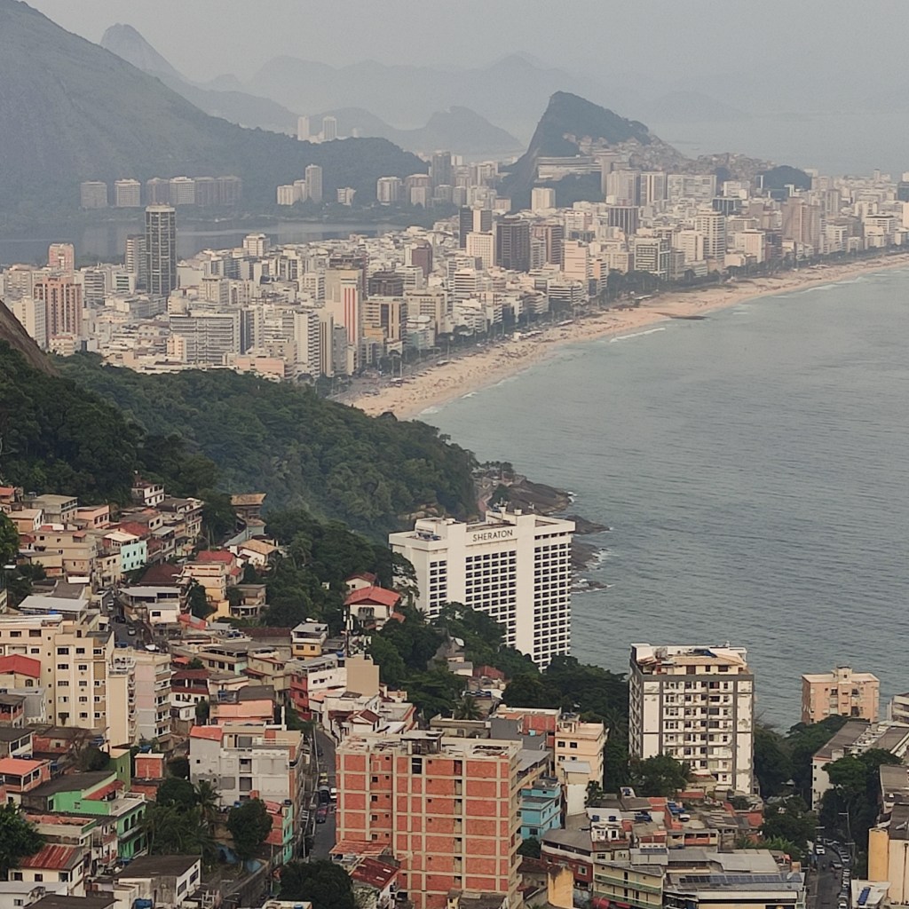Il giovedì 16.11.2023 abbiamo fatto colazione separatamente un po’ presto per poter ripercorrere il sentiero e fare altre stupende foto e filmati, essendoci meno nebbia ed un sole che sbocciava tra le nuvole, grandiosi arcobaleni si proiettavano laddove le particelle acquee delle cascate erano colpite dai raggi. Uno spettacolo indimenticabile e che serberò nel cuore. Nel tardo pomeriggio abbiamo ripreso la LATAM per Curitiba e da lì, nuovo aereo per Rio de Janeiro ma questa volta senza ritardi o ridicoli alterchi a bordo. A Rio abbiamo alloggiato all’Hotel Arena Ipanema, albergo relativamente moderno a due passi dall’omonima spiaggia. Essendo tardi, ho preferito saltare la cena per rimettermi in forma per il giorno seguente.