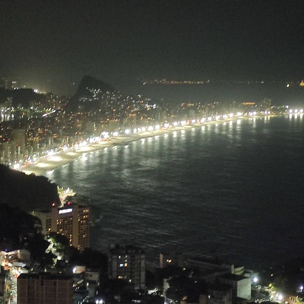 La prima sera abbiamo fatto un’escursione un tantino anomala quanto eccitante! Dalla Comunitade Vidigal (prima erano chiamate favelas) con un bussino sgangherato abbiamo raggiunto il bar Da Laje dal quale si godeva una vista impareggiabile sulla spiaggia di Vidigal più oltre quella di Leblon e di tutta la zona circostante. C’era musica dal vivo ottima Caipirinha e anche il cibo non era male, mentre i locali si lasciavano trasportare dal ritmo ballando con foga. Il rientro, sempre con un bussino gestito dai locali fino ai piedi del morro Vidigal è stato un (lungo) attimo da suspense, dove mi immaginavo che il furgoncino pieno zeppo di persone potesse uscire di strada in ogni momento.