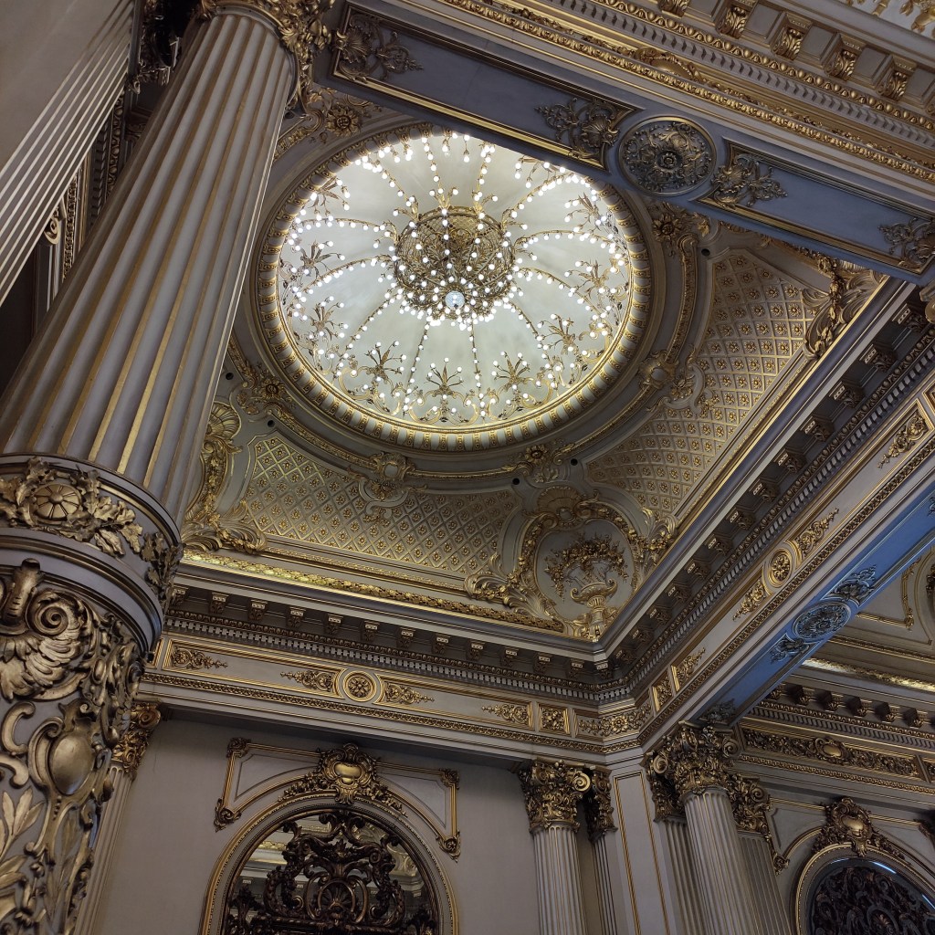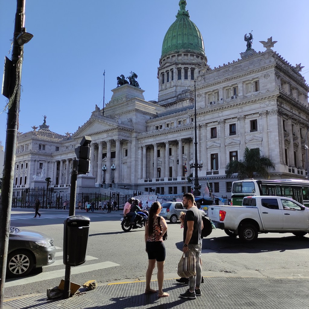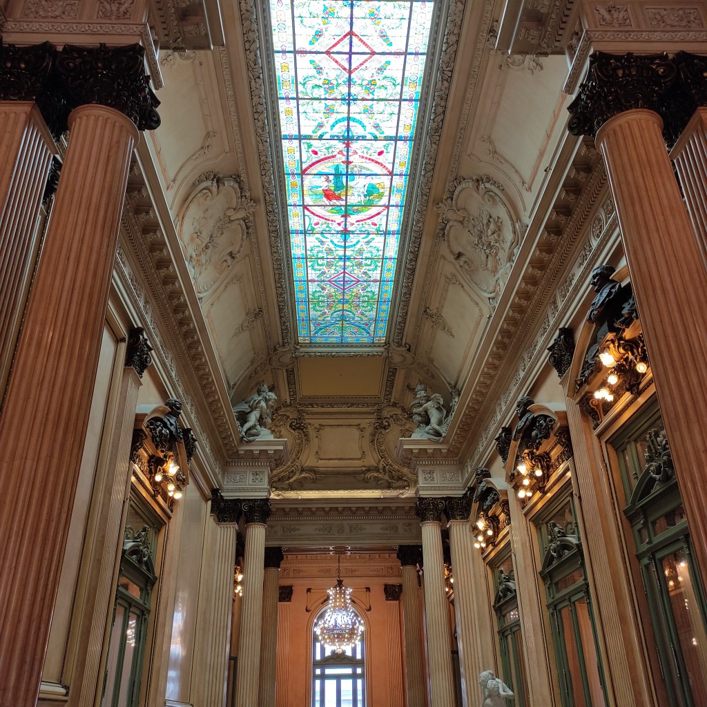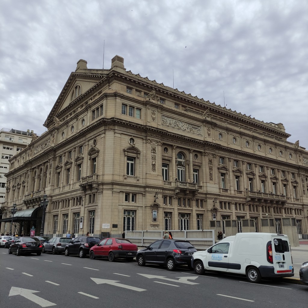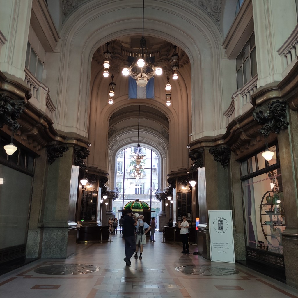 Martedì 21.11.2023 dopo un buon sonno ristoratore, alle 9:00 abbiamo fatto colazione ed in seguito abbiamo preso i soliti UBER per andare in centro di Buenos Aires. l’itinerario per le visite durante la nostra permanenza, è stato definito da Fabio: teatro Colon e visita guidata; Obelisco – Congresso Nacional – Casa Rosada e la sua Plaza de Majo – Cattedral Metropolitana – Palacio Barolo – Chiesa di San Ignacio de Loyola inclusi diverse fermate per fare delle fotografie. Purtroppo per visitare il Palacio Barolo dell’architetto Carlos Hilger i cui dettagli della costruzione presenta delle somiglianze con l’opera di Dante “La Divina Commedia”, bisognava riservare con anticipo il tour guidato e non c’erano più posti. La pianta dell’edificio è basata sulla metrica della Divina Commedia di Dante, questa architettura conosciuta come un Danteun. L’edificio è diviso in due blocchi: nel primo sono situati 11 uffici in ciascuno dei livelli ed il numero rimanente, 22, risponde alla metrica utilizzata da Dante nei 100 canti.