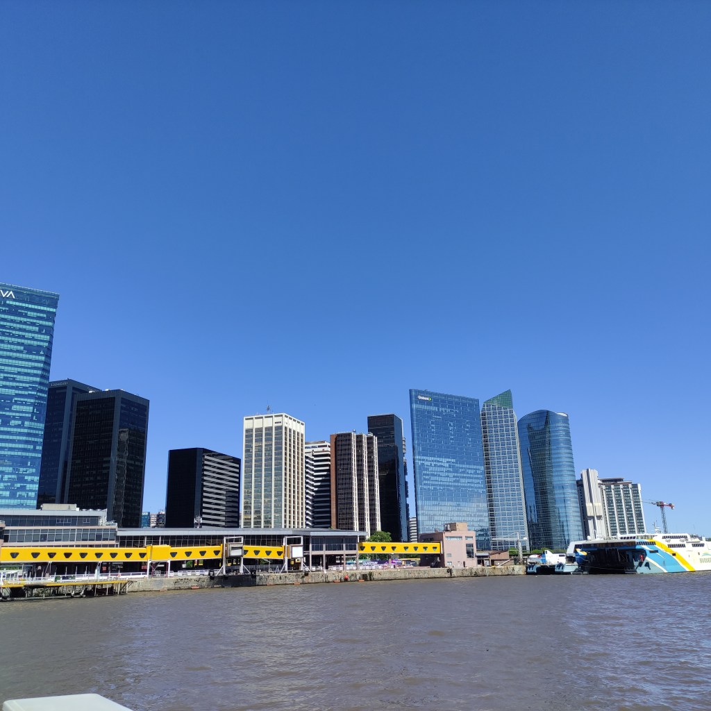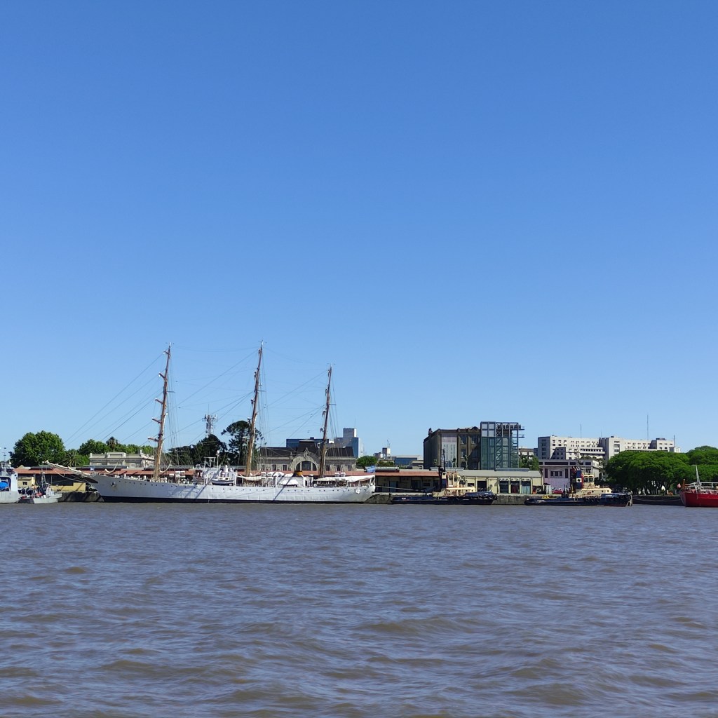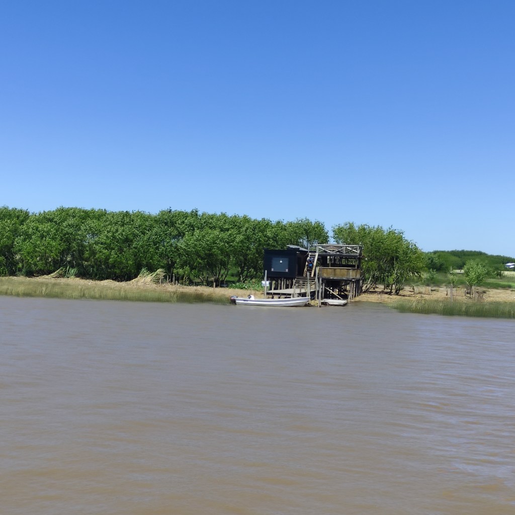 Mercoledì 22.11.2023 dopo la colazione, un bussino di un’agenzia di viaggi ci ha portati fino al porto (zona portuaria), dove abbiamo preso un battello-crociera che ci ha trasportati sul fiume Paranà. Per meglio carpire quell’atmosfera di quei luoghi, abbiamo navigato tra la natura ancora incontaminata del delta fino alla cittadina di Tigre che dista circa 30 km al nord della capitale Buones Aires, passando tra innumerevoli isoletti fluviali. Come spesso accade, il (troppo) turismo è buono per l’economia ma nuoce alla natura ancora selvaggia di alcune di queste isole, mentre altre presentano diverse strutture abitative tutte in legno e la maggior parte costruite riazate dal terreno per contrastare l’eventuale innalzamento delle acque. Ognuna di queste casette, molte delle quali sono dei “rifugi” per il fine settimana dei porteños, hanno il loro pontile d’attracco in quanto l’unico modo per arrivarci è per la via fluviale. Il sistema di trasporto locale è quindi garantito a barche-taxi usate dai locali. Per facilitare chi abita lì permanentemente, le suole ed il trasporto sono gratuiti; per fare gli acquisti di beni di consumo, c’è un’apposito barcone-negozio come pure anche la raccolta dei rifiuti è organizzata in modo simile. Il museo d’Arte di Tigre, un edificio storio dei primi del ‘900 e dove era luogo d’incontro dell’élite porteña (praticavano gli sport tennis e principalmente canotaggio), era però chiuso.