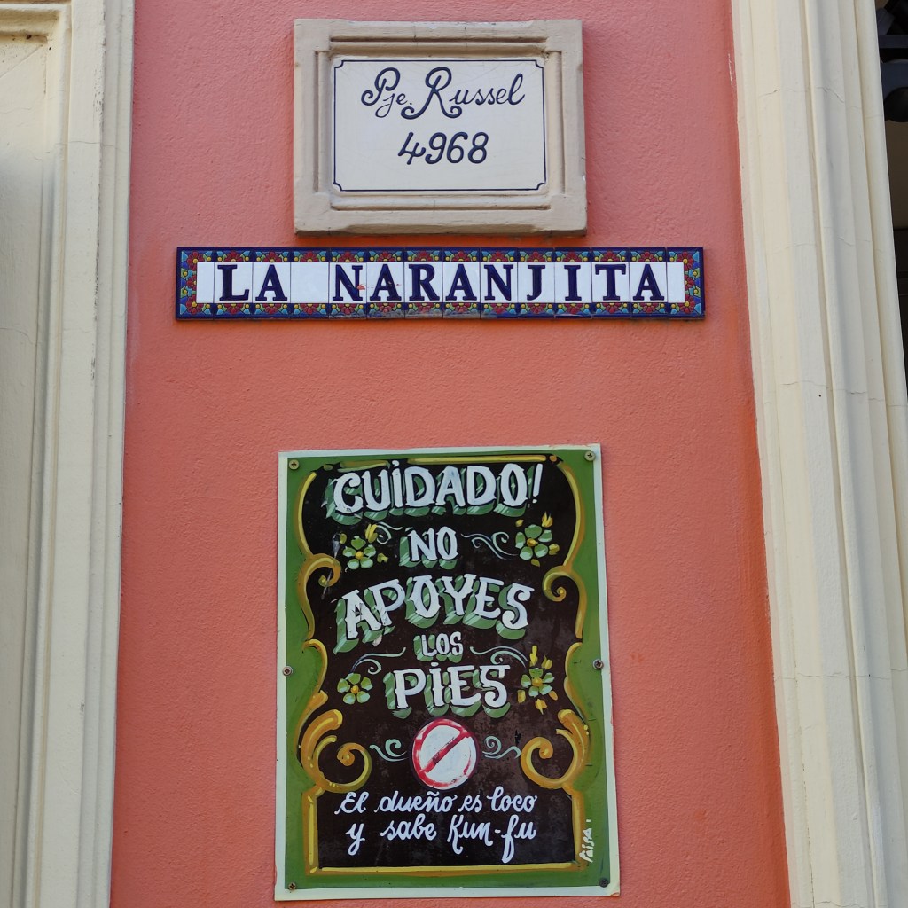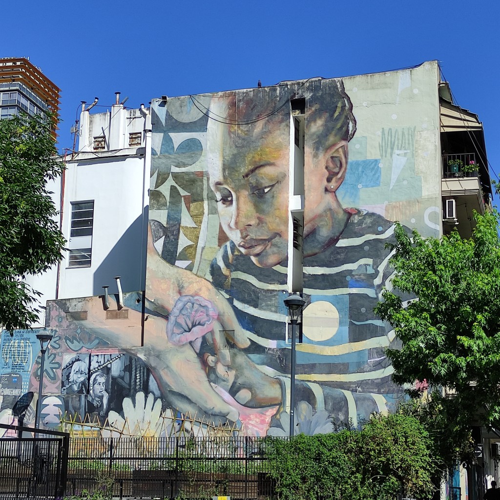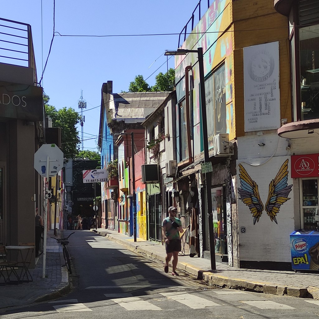 Rientrati in città siamo scesi nella zona Palermo (Soho) dove ci sono diversi bar/caffè e ristoranti. Dopo un rinfresco, siamo rientrati in albergo a piedi, passando tra viuzze per cogliere l’atmosfera scattando diverse fotografie, specialmente di murales che avevo notato già in Brasile per la loro bellezza e colori.
