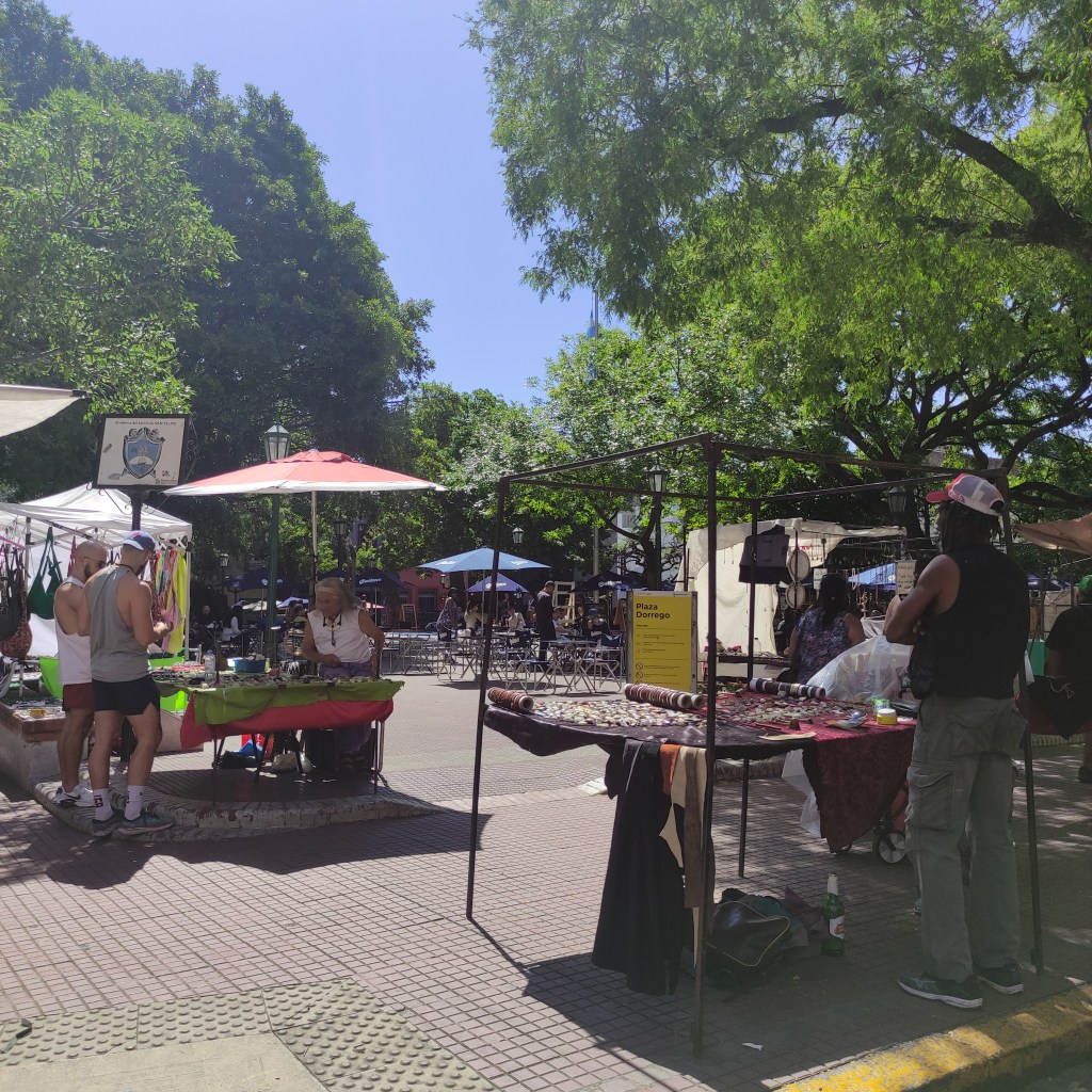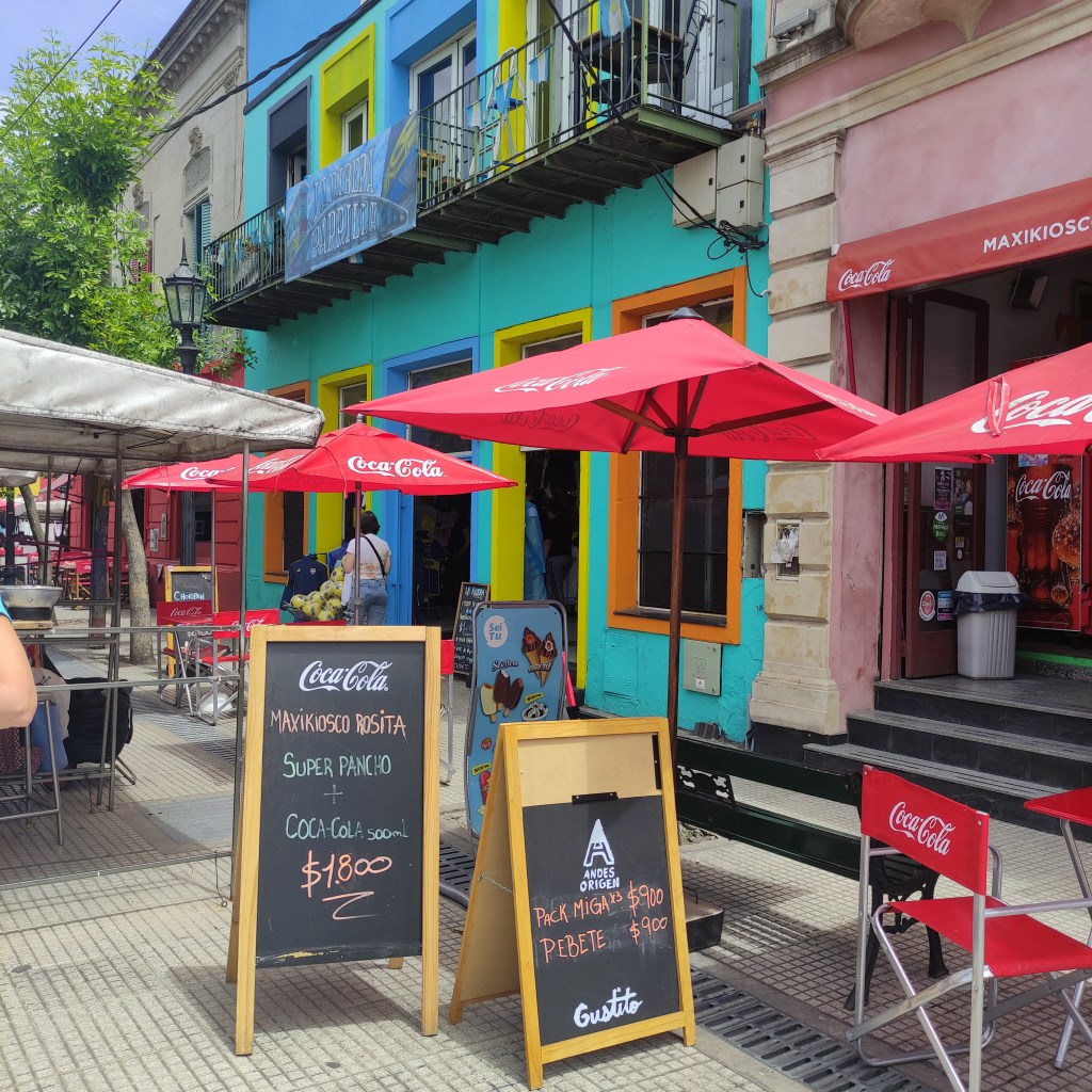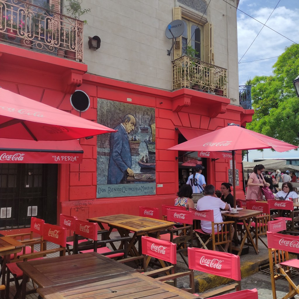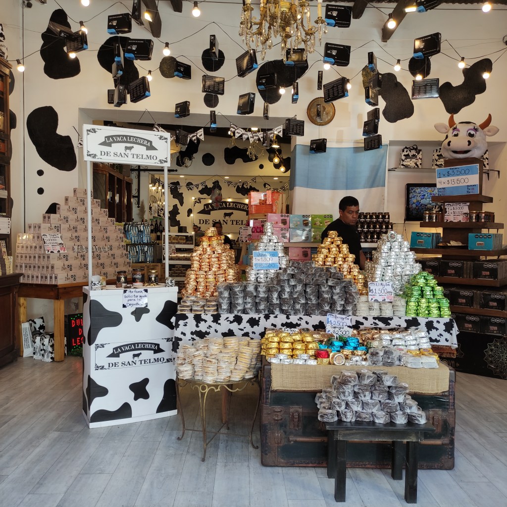 Giovedì 23.11.2023 con gli altri abbiamo fatto appuntamento alle 10:00 per passeggiare lungo il Caminito de la Boca che è una via variopinta dove gli edifici in lamiera variopinti ci riportano alle antiche origini di Buenos Aires. Questo luogo prese importanza culturale poiché ispirò nel 1926 il famoso Tango Caminito! Abbiamo poi curiosato tra le molte bancarelle che vendevano un pot pourri di cincaglierie: da oggetti antichi ad altri fatti appositamente per i turisti per mano di hippies moderni ma dalla foggia sessantottina. Siamo passati davanti alla chiesa di Sant’Telmo inizialmente dedicata a Nuestra Señora de Betlem, la cui costruzione cominciò nel 1734. Bella la sua facciata frontale in stile neobarocco, poi io ho perso il senso dell’orientamento. Ovunque, a stuzzicare i golosi, si trovano negozietti che mettono in bella mostra confezioni dei famosi “dulce de leche” che ti fa prender peso al solo guardarli… magari avrei anche potuto lasciarmi tentare visto che avevo camminato per più di 17 km.