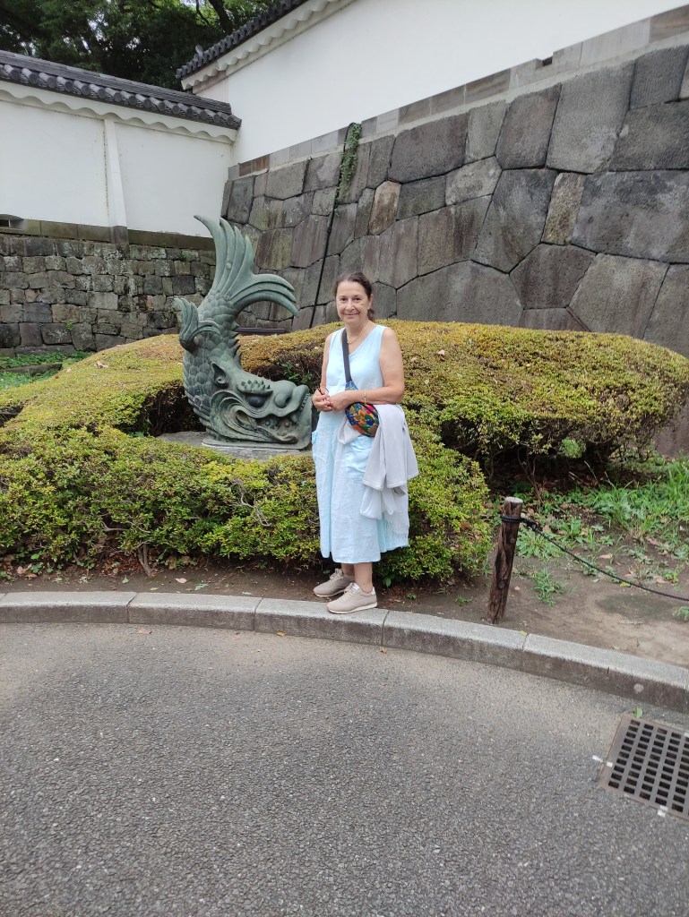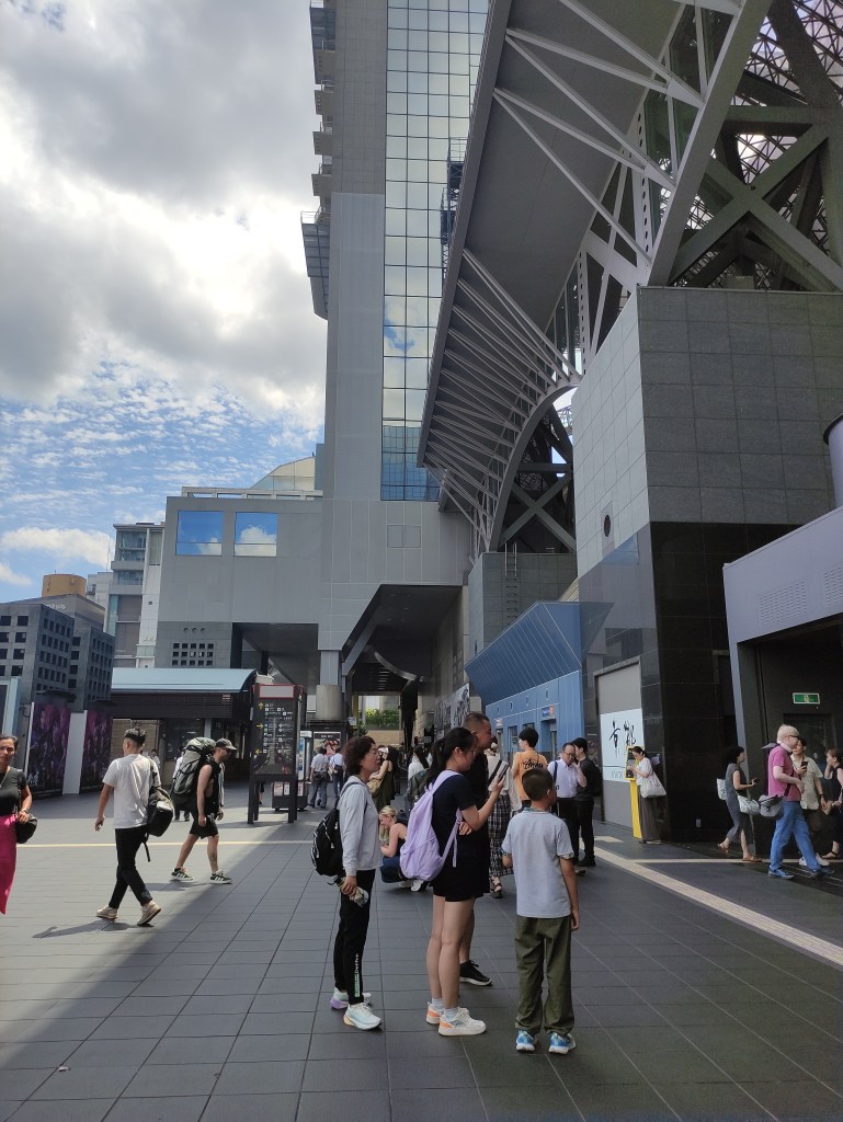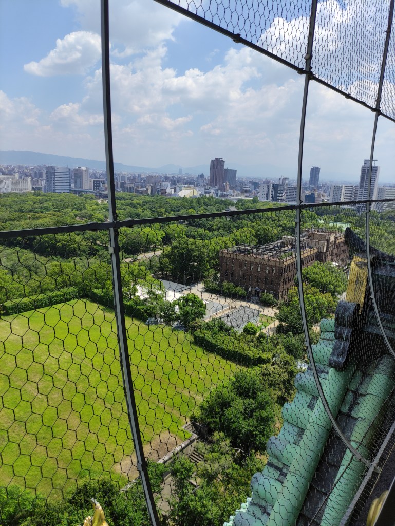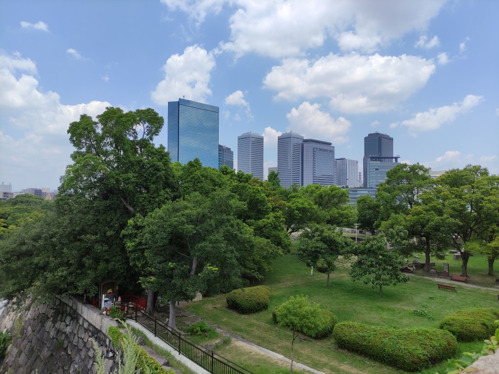 We visited Osaka Castle, always under a scorching sun and requiring liters and liters of fluids. The construction of the castle began in 1583 on the former site of the Ishiyama Honganji Temple. Toyotomi Hideyoshi, a military leader who in the 16th century intended the castle to become the center of a new unified Japan under his rule. It was the largest castle at the time. From one of its highest terraces, there was a beautiful view of the entire city.