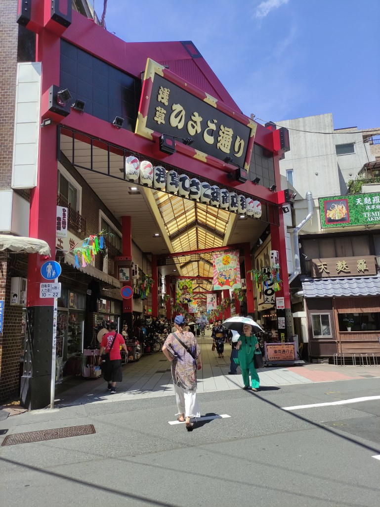 In the morning we went to Asakusa, the โold Tokyoโ in the district, under a scorching sun. We visited the Senso-ji Buddhist temple, passing through Kaminarimon and then along Nakamise-dลri, the shopping street. Personally, I found it very charming to see that many Japanese people value their culture. They do this not only by visiting places of worship, but also by proudly wearing their kimonos or yukatas.