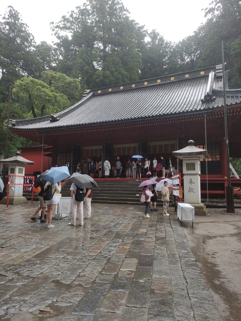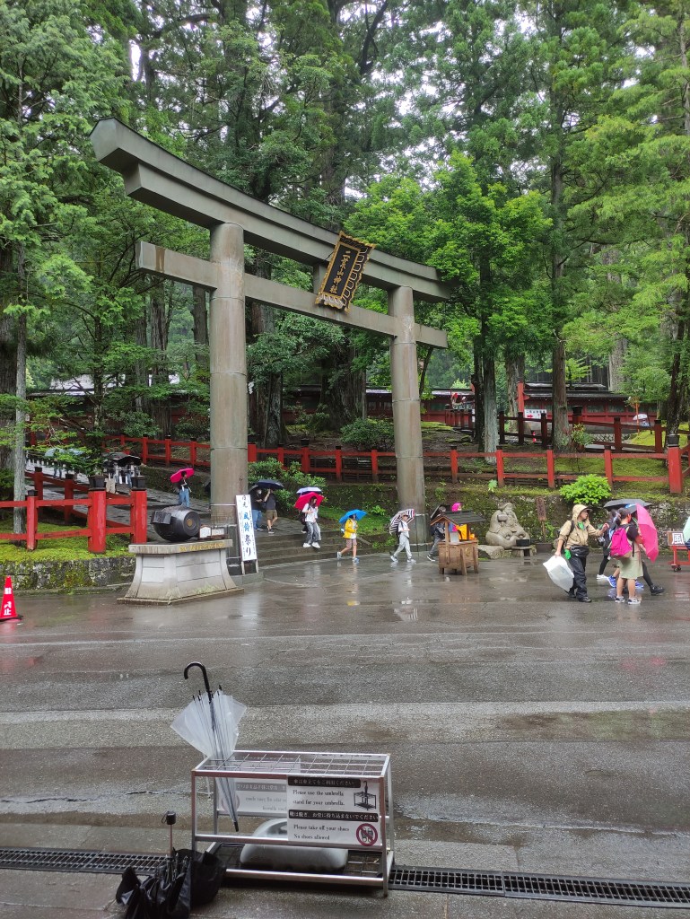 The train continued to Fukushima, north of Nikko, where we arrived in the early afternoon. The Fairfield by Marriott Tochigi Nikko hotel had our room ready, so we didn’t have to wait. This time, contrary to what I wrote before, the room was spacious and there was plenty of room to unpack our suitcases. Unfortunately, it was raining heavily, but really pouring down. There are many temples and shrines to visit, so we had to make a choice because time was limited. The first was Toshogu Shrine, followed by Futarasan-jinja Shrine, Nikkosan-Rinnoji Temple, and the sacred Shinkyล bridge. We then returned to the center, literally passing over a waterfall river along a staircase. The nature is very lush: the large wild lilies that grow everywhere are beautiful.
