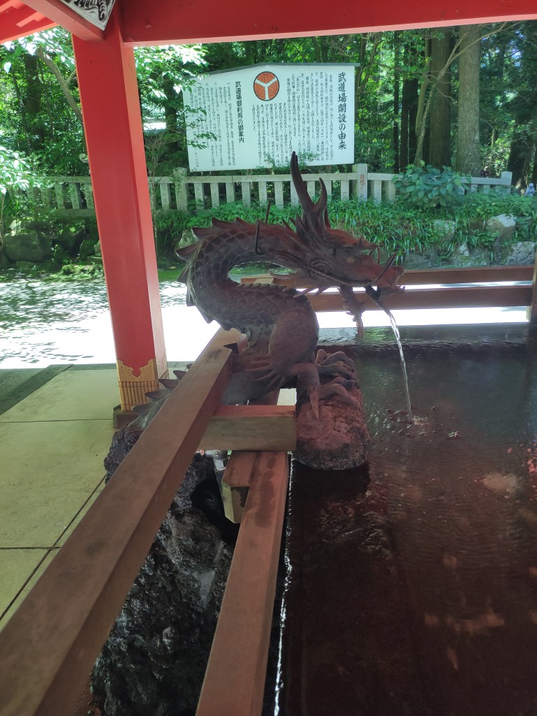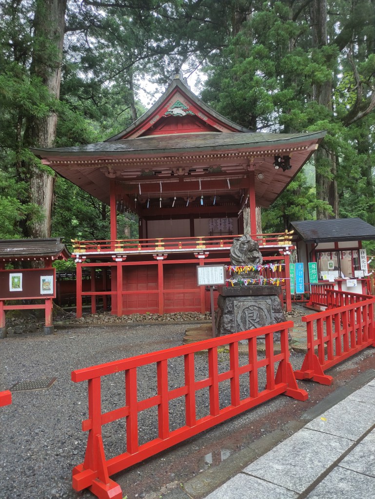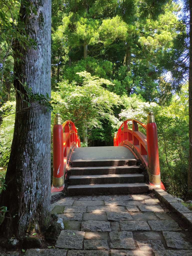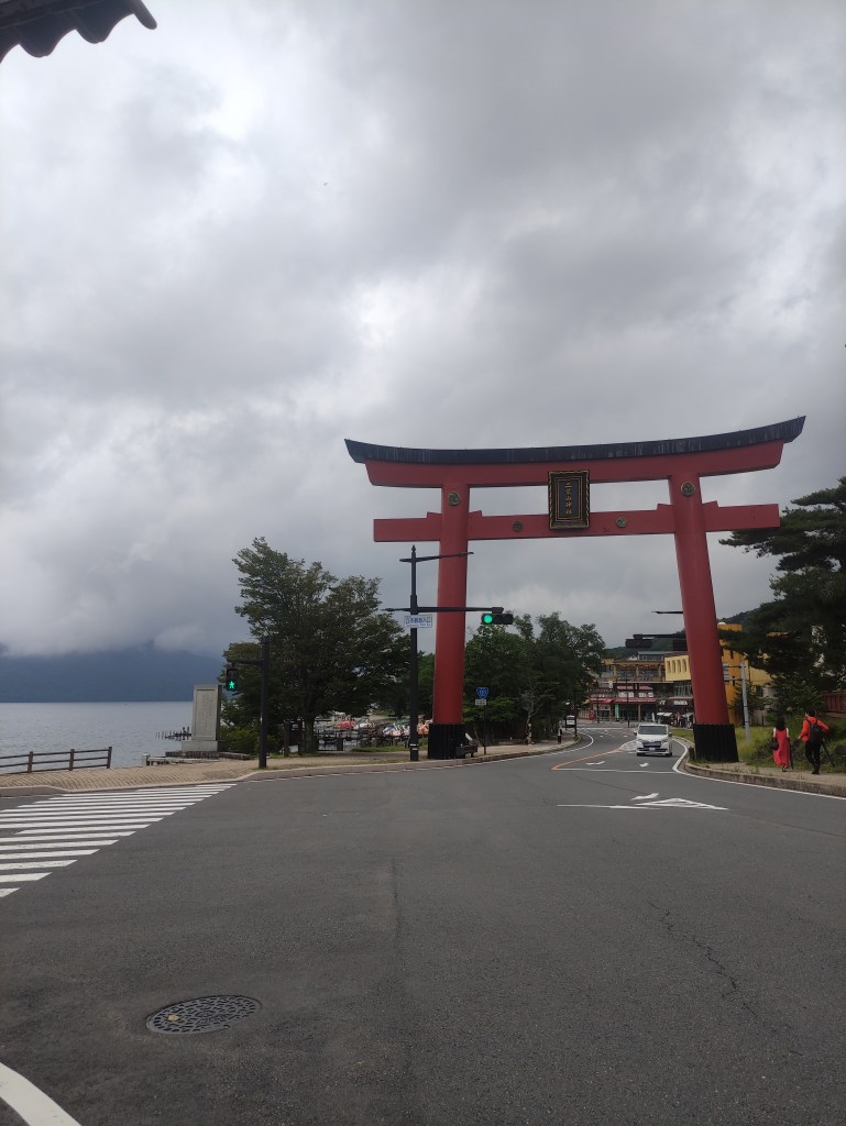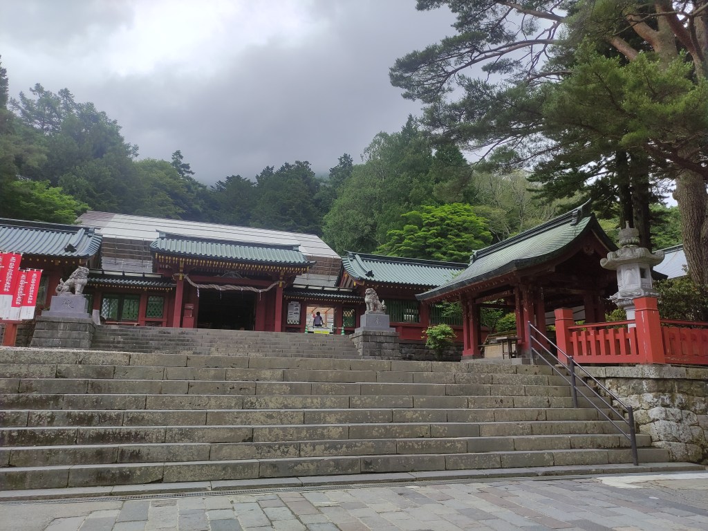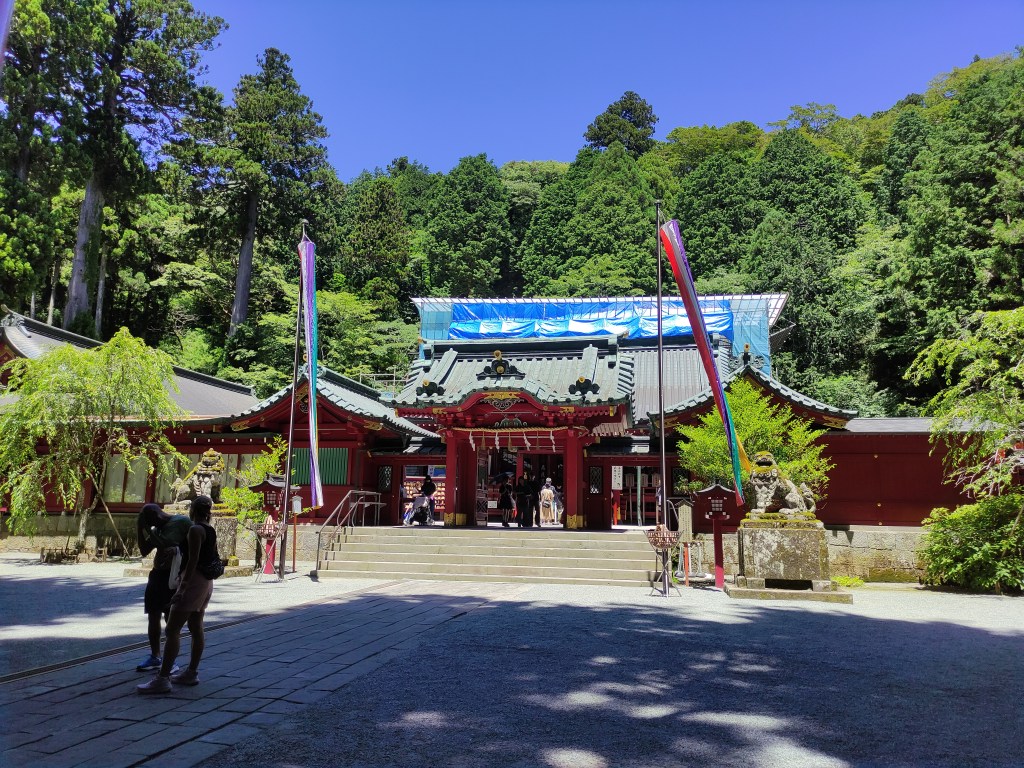 A path leads from the torii gate in Lake Ashinoko or Red Gate of Peace (heiwa no torii) up a series of steps flanked by lanterns through the forest to the main building, which sits peacefully among the tall trees. The shrine is beautiful throughout the year, and is particularly breathtaking when shrouded in mist, or so we read.