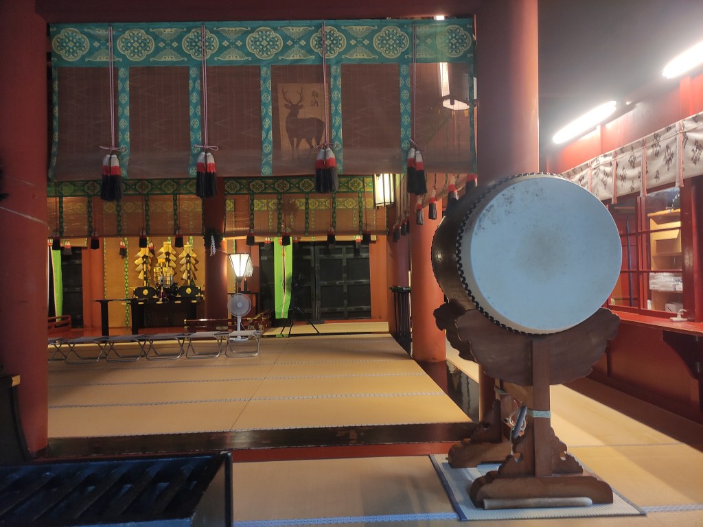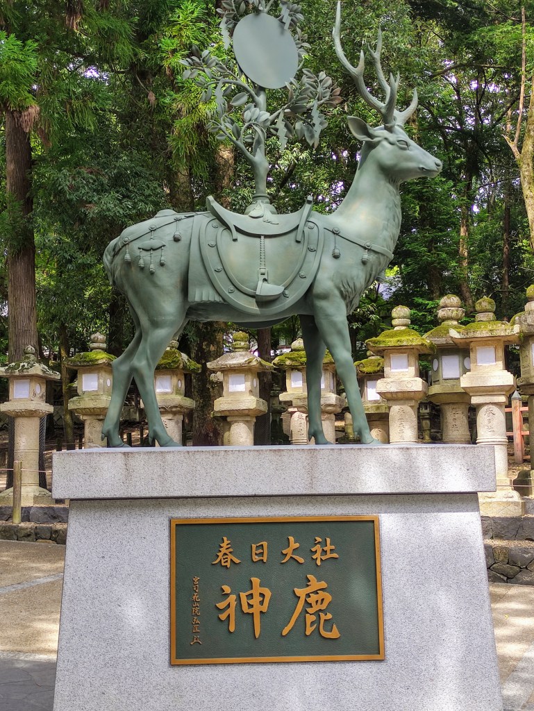 The statue of Takemikazuchi, represented by a deer, stands majestically in an open space.
