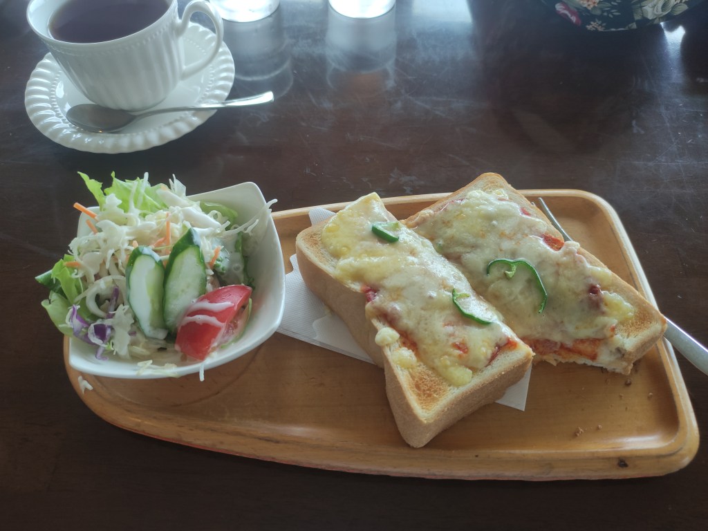 The place we found was supposed to be a cafรฉ known for its many varieties of coffee from different producing countries. With our caffelatte, we were served two-centimeter-thick buttered toast with a salad. This for breakfast?