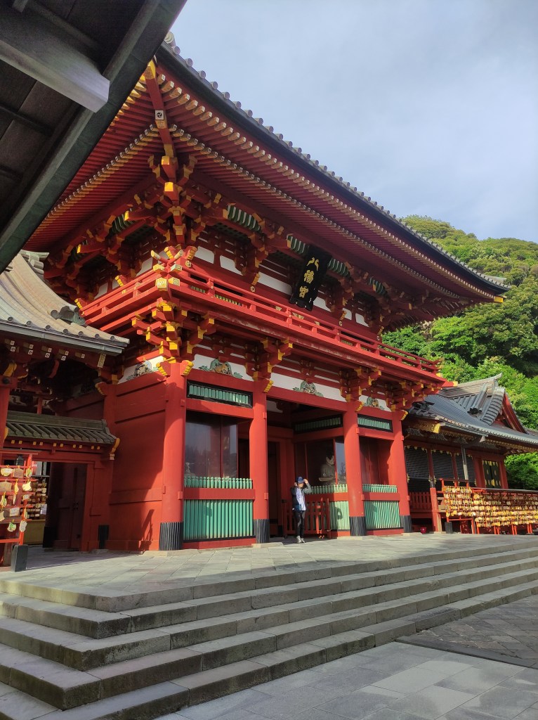 With only part of the afternoon available, we started by visiting the Tsurugaoka Hachimangu temple complex which is dating back to 1063. It catches the eye the huge red โToriโ placed in front of the entrance to Kamakura’s most important Shinto shrine. This shrine plays a central role in Kamakura’s cultural and spiritual life. It is dedicated to Hachiman, the patron god of samurai.