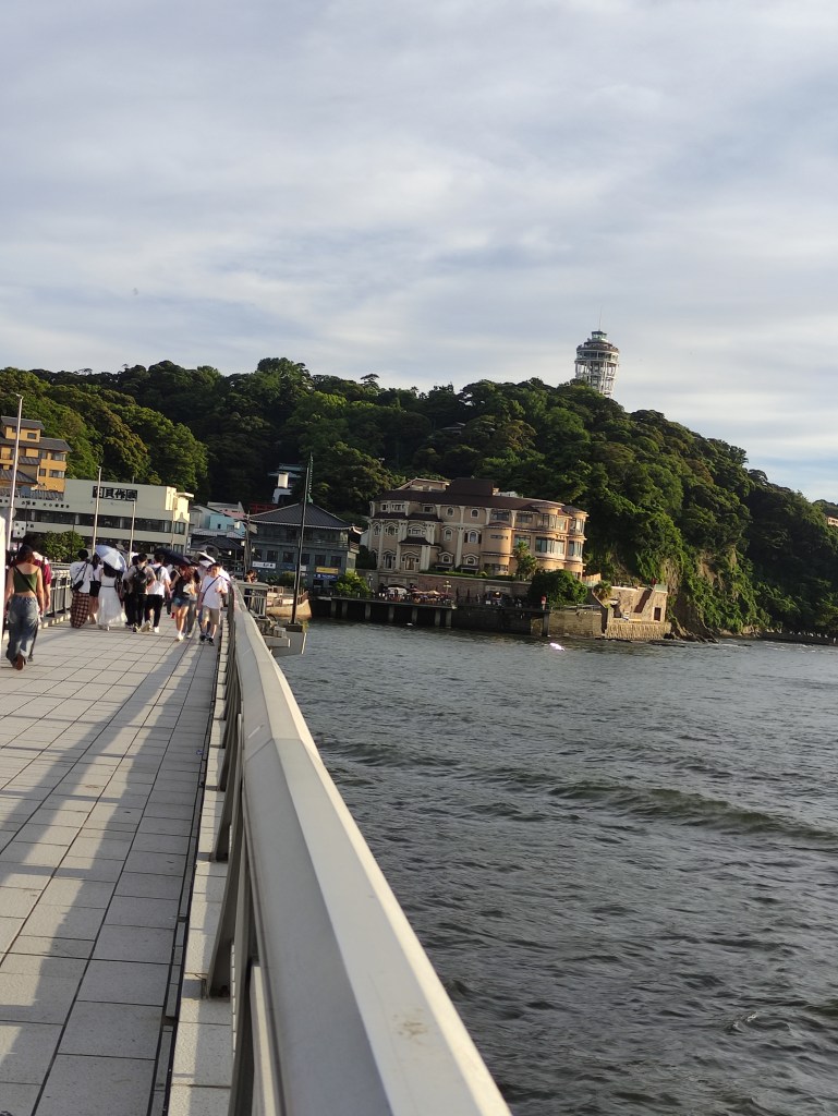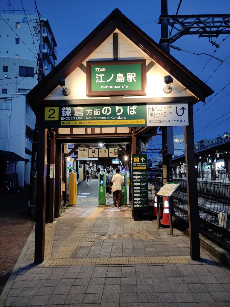 At the end of the day, a visit to Enoshima was a must. We reached it aboard a picturesque little train reminiscent of those in Miyasaki’s cartoons. But the day was coming to an end and we didn’t have time to visit the its shrine, Samuel Cocking Garden, the Sea Candle nor the cave. Fortunately, I admit I was thrilled to finally see Fuji-san on the horizon in the sunset light without any clouds.