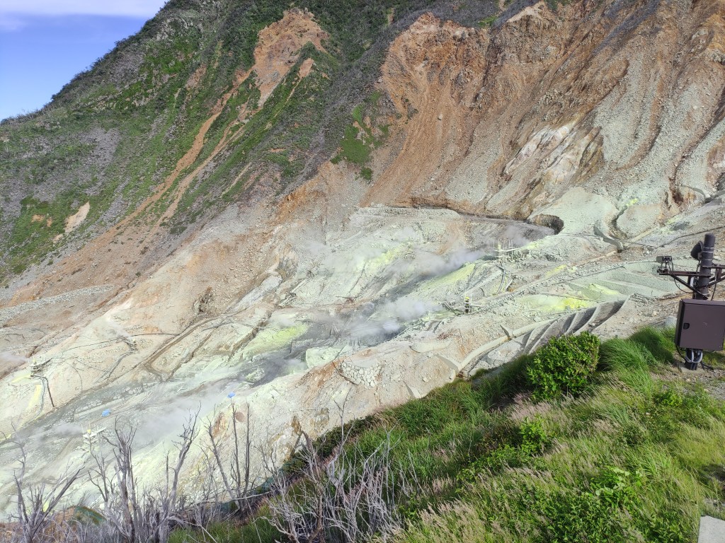 From Miyanoshita, we took a bus to Gora Station and from there the cable car to Sounzan. There we took the ropeway to the final Owakudani Station. On the summit-caldera of the still active volcano, we had a wonderful view of Mount Fuji. But unlike Enoshima, it seemed as if we could touch it with our fingers. The geothermal hot spot Odawakudani was forged some 3,000 years ago during Mount Hakone’s last eruption. Fumaroles hissing, sulfur-stained rocks glowing in eerie shades of yellow, and steaming pools bubbling like a witchโs cauldron. Inside the caldera is a strong sulfurous odor. A local specialty is black eggs (or kurotamago). It is cooked in the bubbling hot springs and if you eat it, you shall live seven years longer.