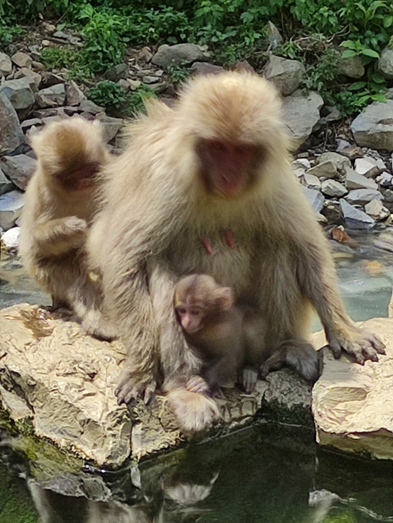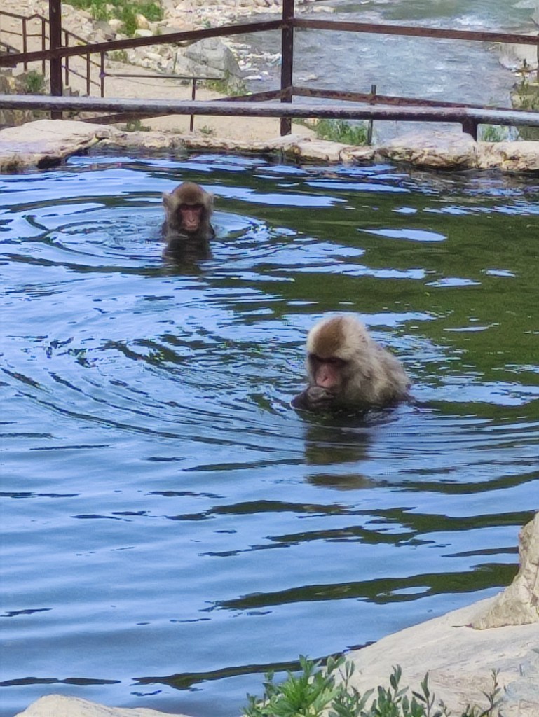 These Japanese macaques (Nihonzaru) are unique. They love to bathe in the hot springs while grooming each other or playing together. Jigokudani Park is perhaps best known for the videos and photos taken in winter, when it snows and the monkeys soak in the steaming water to keep warm.