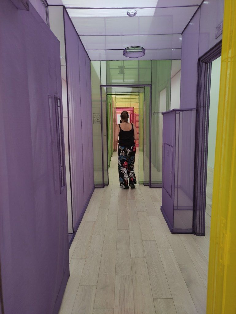 When we arrived on the “Island of Art”, as this somewhat unusual island is also called, and we immediately went to the Wright Style hotel. The room was small, as usual, but at least there was space to open our suitcases and a private bathroom. Around 5:00 p.m., we took a walk to the Benesse House Museum. On display outdoors were several sculptures by Niki de Saint Phalle, very colorful and expressive. Inside the museum, designed by architect Tadao Ando, there were exhibits by various contemporary artists, but I particularly enjoyed the space dedicated to Claude Monet.