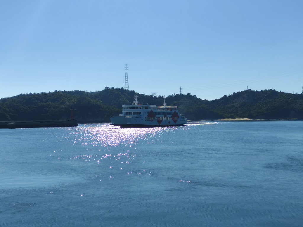 We got up at 6:30 a.m. and rushed to Yamanouchi Station. The local train took us to Nakano, and from there, we took another local train to Nagano. The Shinkansen express train took us from Nagano to Nagoya. From there, we took another local train to Uno and then the ferry to Naoshima. Well, it really was a very long journey.