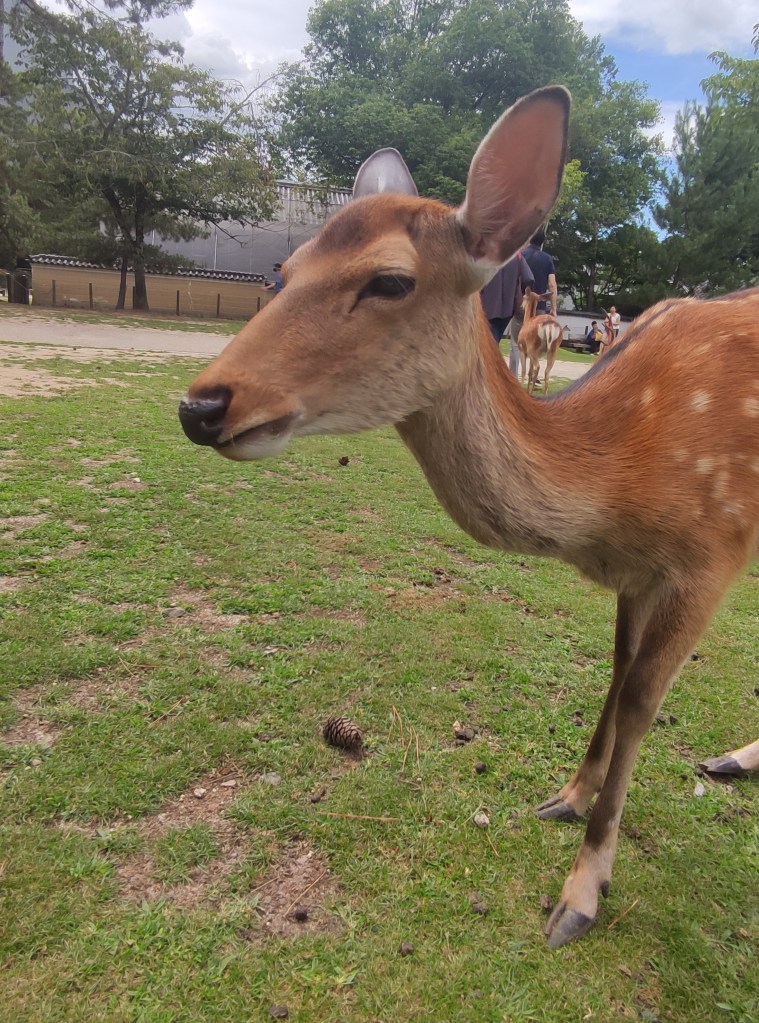 It was extremely hot in Nara Park. The city is located at the foot of Mount Wakakusa, and we were at risk of heatstroke. Here, too, there are countless excursions to enjoy, and the ideal plan is to stay for a few days.
