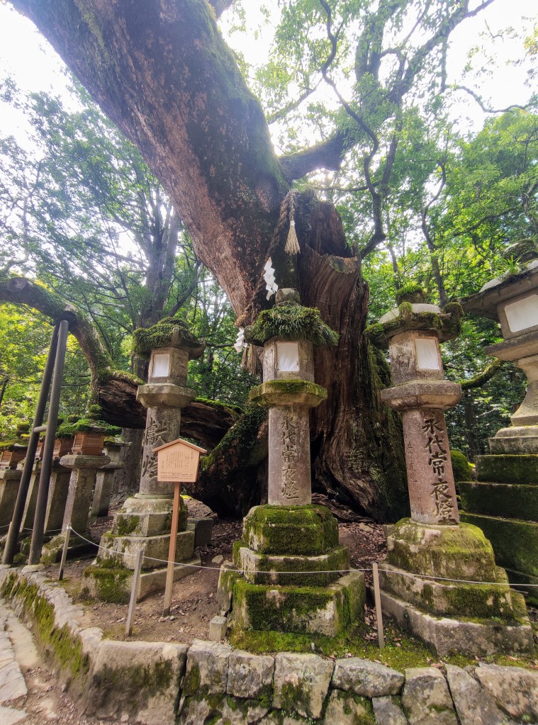 The dozens and dozens of stone lanterns covered with thick moss, favored by the high humidity of the forest, are very beautiful. I tried to imagine that place on a moonless night. With the lanterns lit up to illuminate the path covered with snow and ice. And the faithful who go to the Kasuga Wakamiya Onmatsuri, which is an important four-day festival held each year from December 15th through December 18th in honor of the primary kami (deities) of Wakamiya Shrine.