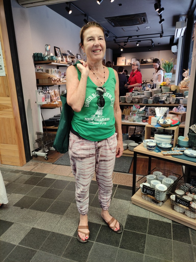 Our last day… we took it easy. After the usual cappuccino at Starbucks and croissant (purchased at a nearby bakery/pastry shop), we were back on track. This time we headed to Dลtonbori Street, a historic canal area known for its theaters, restaurants, and illuminated signboards. But actually we were looking for shops. So we literally got lost in the countless narrow streets that became a veritable labyrinth. Being a duty-free paradise if you have a foreign passport, goods are attractively priced thanks to the very weak yen. Unfortunately, wandering in and out of shops where the air conditioning is turned at the maximum is quite tiring, not to mention the pain in our feet. We returned to the hotel after dinner at a sushi bar that even had vegan options! The next day we had our return flight, and we had to get up at 5:00 a.m.