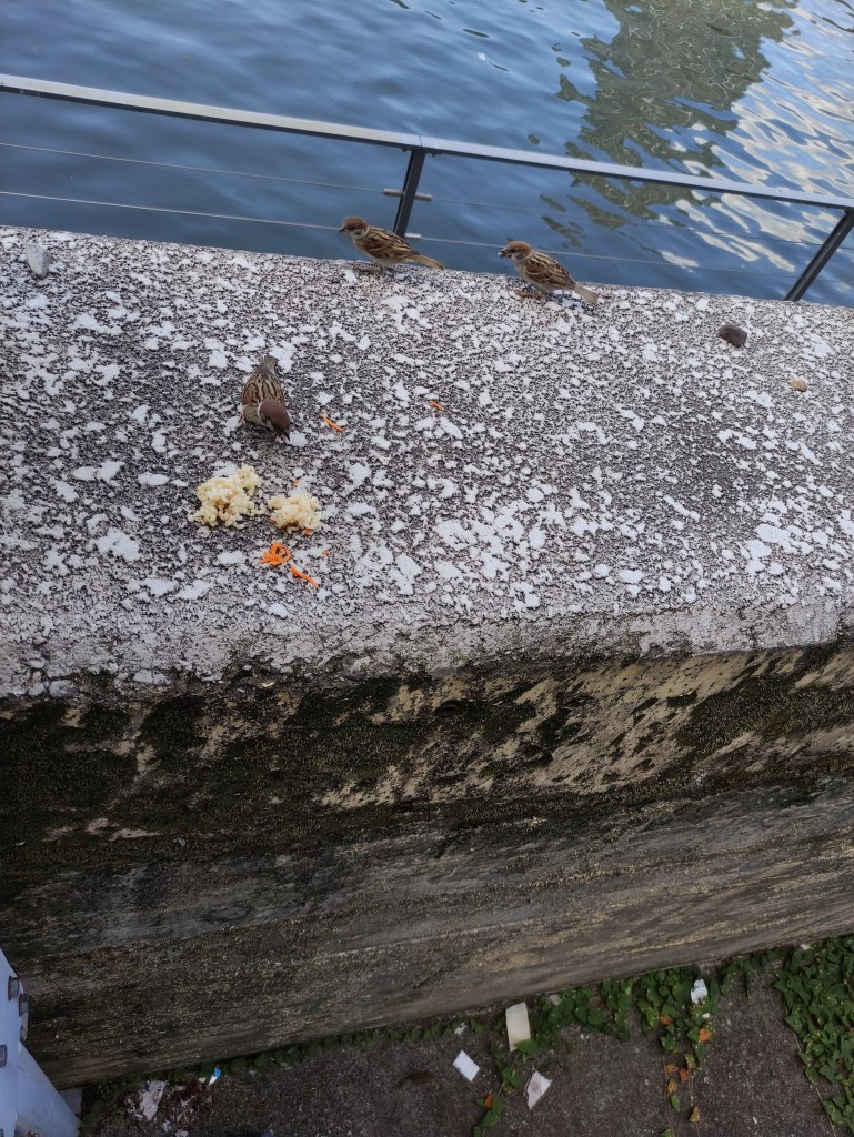 Check-in at the Best Western Plus in Osaka was only possible from 3:00 p.m., so we decided to have lunch at a vegan restaurant not far from there. My favorite pastime: distributing my brown rice to hungry pigeons and sparrows.