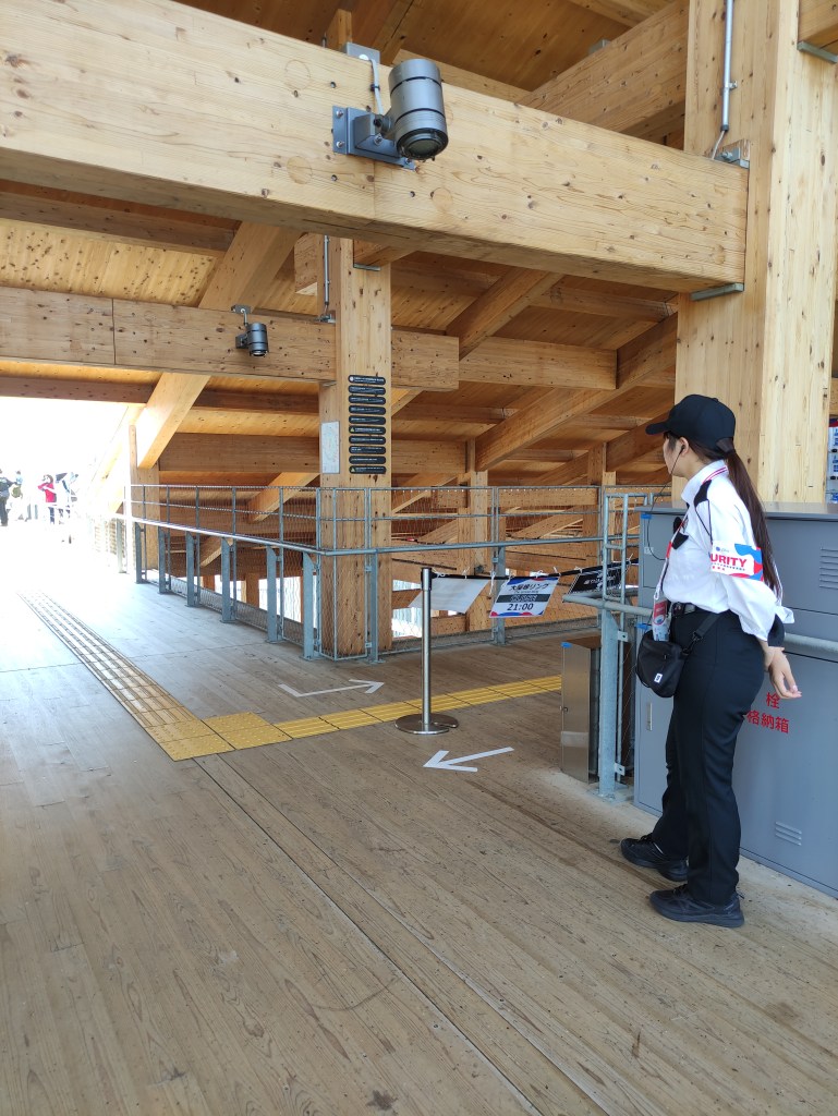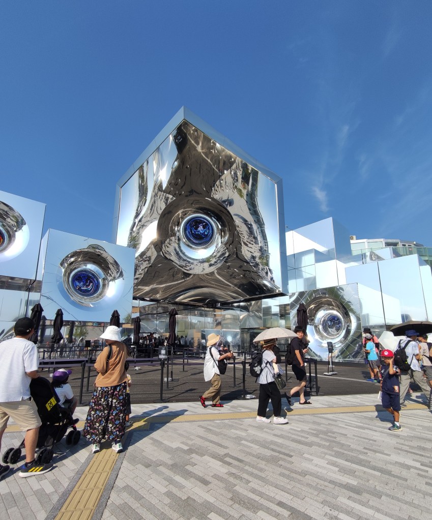 Under the scorching sun, with no shade to protect people, we waited in line to get in at 11:00 a.m. The slots to enter EXPO 2025 are set in advance, and the 9:00 a.m. and 10:00 a.m. slots were already sold out.